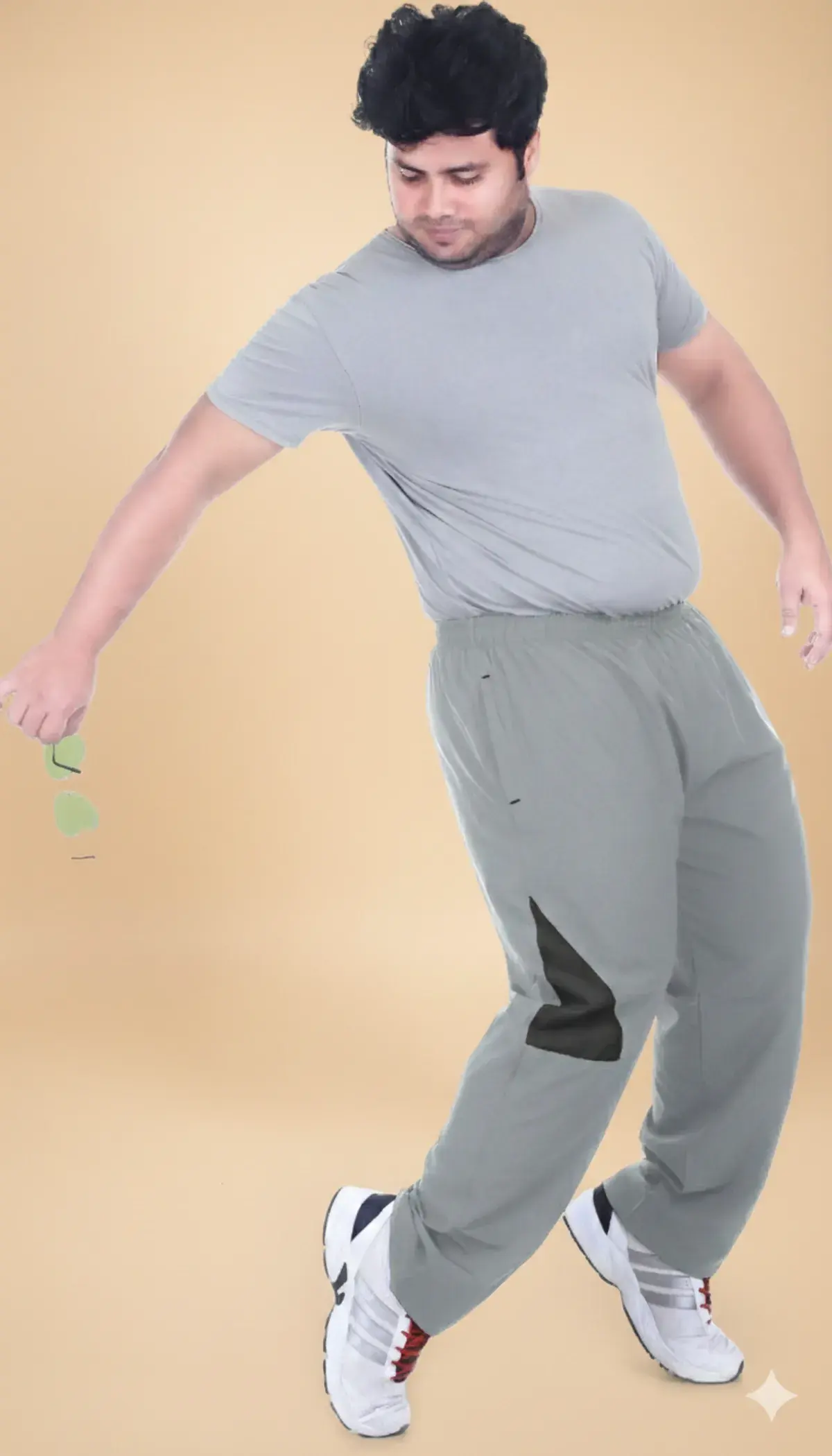 Enhance your activewear wardrobe with these silver solid track pants for men. Made from a premium lycra blend fabric, they provide superior stretch, breathability, and long-lasting comfort. The elastic waistband ensures a snug and adjustable fit, allowing ease of movement during workouts, jogging, or daily activities. Designed with a clean solid pattern and modern sporty appeal, these track pants are perfect for both fitness sessions and casual wear.