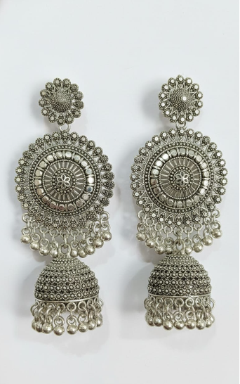 Perfect for festivals, weddings, and everyday ethnic wear, the classic floral design paired with the antique silver look adds a graceful and vintage appeal. Lightweight yet eye-catching, these earrings complement sarees, kurtis, and fusion outfits effortlessly.