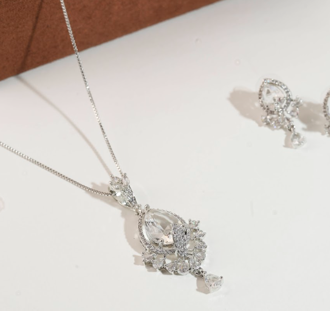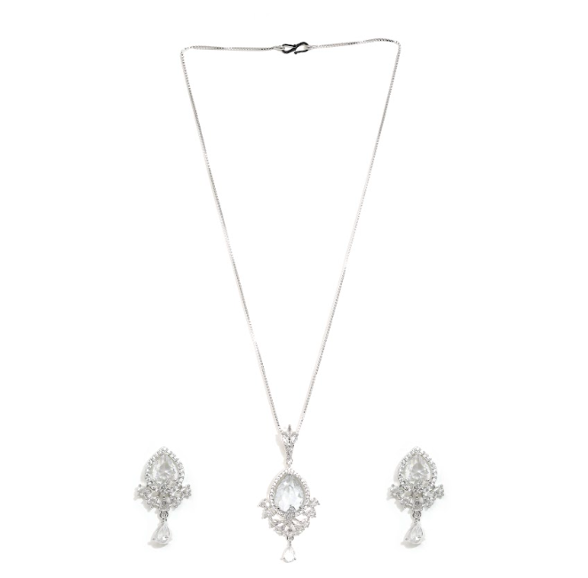 Crafted with a high-shine silver-tone finish, this jewellery set offers timeless sophistication and is ideal for both special occasions and elegant daily wear. A versatile accessory that pairs effortlessly with western, fusion, and traditional outfits.