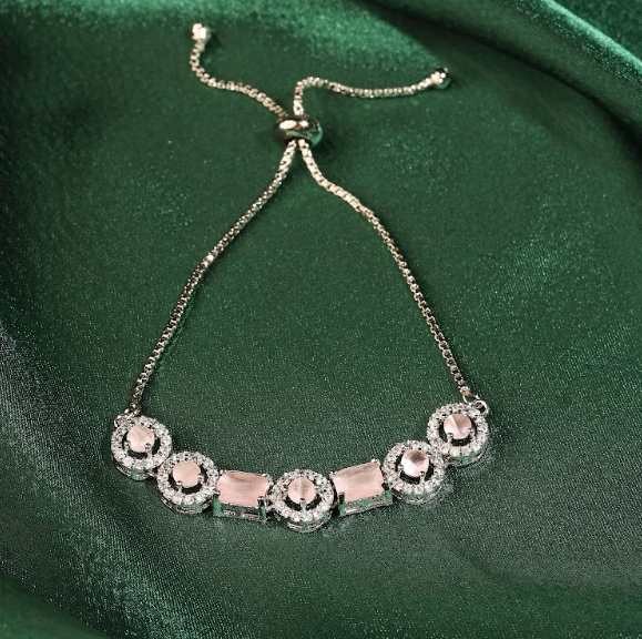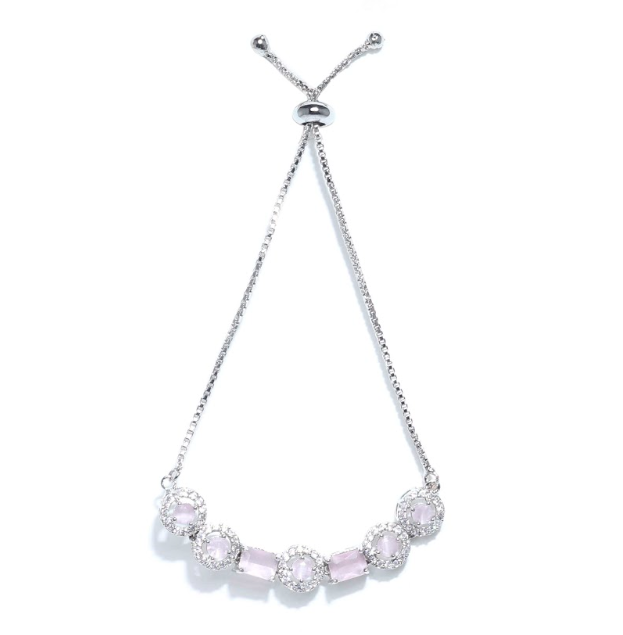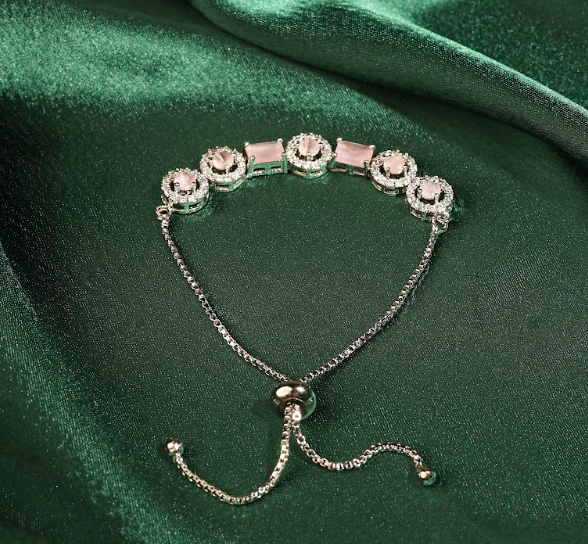 The adjustable chain ensures a comfortable fit for all wrist sizes, while the rhodium plating provides long-lasting shine and tarnish resistance. The combination of AD stones and crystals creates a brilliant, light-catching sparkle that enhances any outfit.