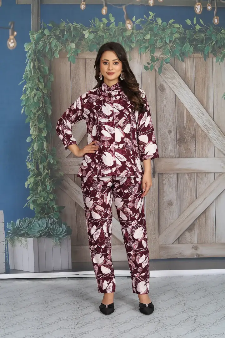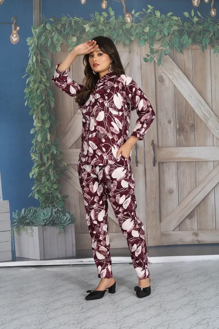 The Simran Maroon Shirt Pant Set brings together classic elegance and everyday comfort. Crafted from premium cotton fabric, this set features refined foil print detailing that adds a subtle festive touch to the rich maroon base. Designed for effortless styling, the shirt paired with a coordinated pant offers a balanced look suitable for casual gatherings, festive occasions, and day events.
