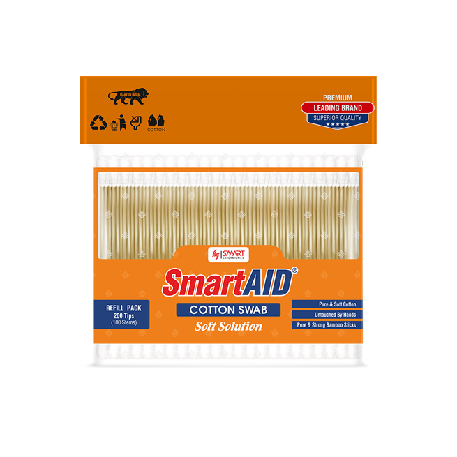 SMARTAID Cotton Swabs (Pouch Stick Cotton Swabs) are personal care hygiene tools consisting of small sticks with cotton tips at one or both ends. They are typically used for cleaning, beauty care, and other light hygiene tasks.