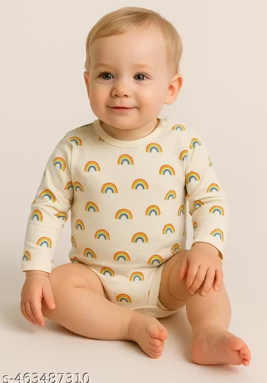 Soft Cotton Full Sleeve Baby Bodysuit – Unisex Romper with Snap Buttons (Pack of 1)
