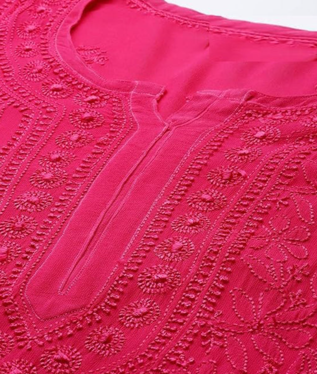 SONAM Fuschia Pure Viscose Resham Thread Chikankari Kurta