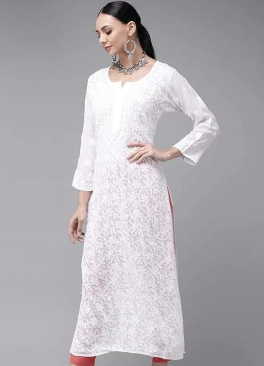 - ✨ Delicate Resham Embroidery: Features white-on-white Chikankari work with fine Resham thread detailing for a refined, elegant finish.