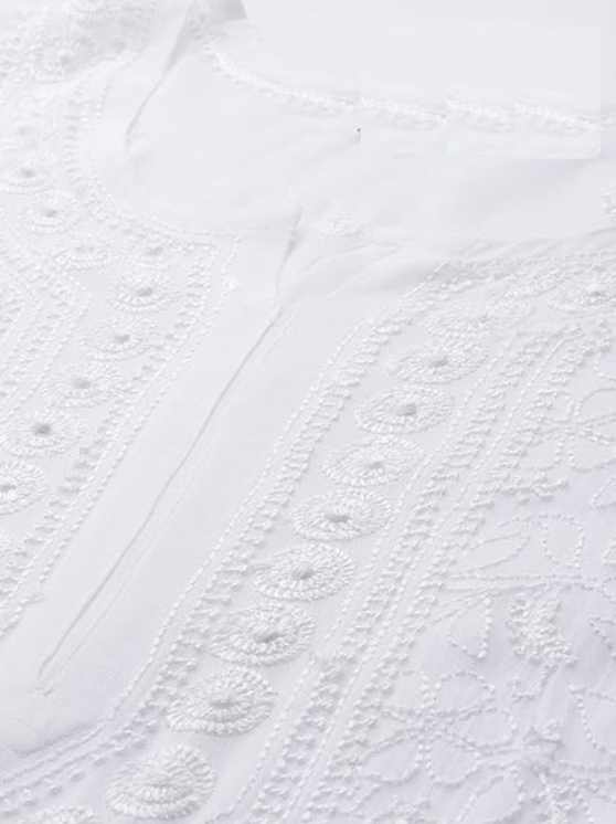 SONAM White Pure Viscose Resham Thread Chikankari Kurta