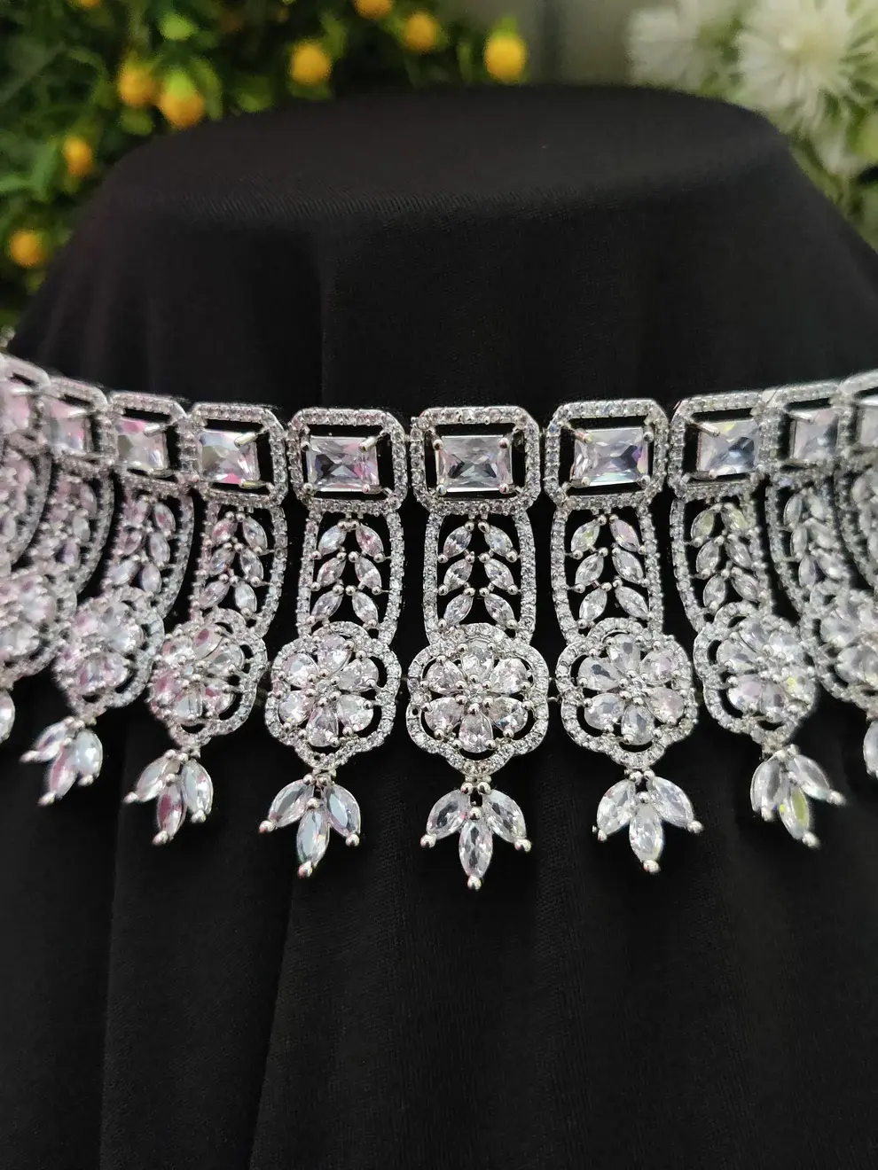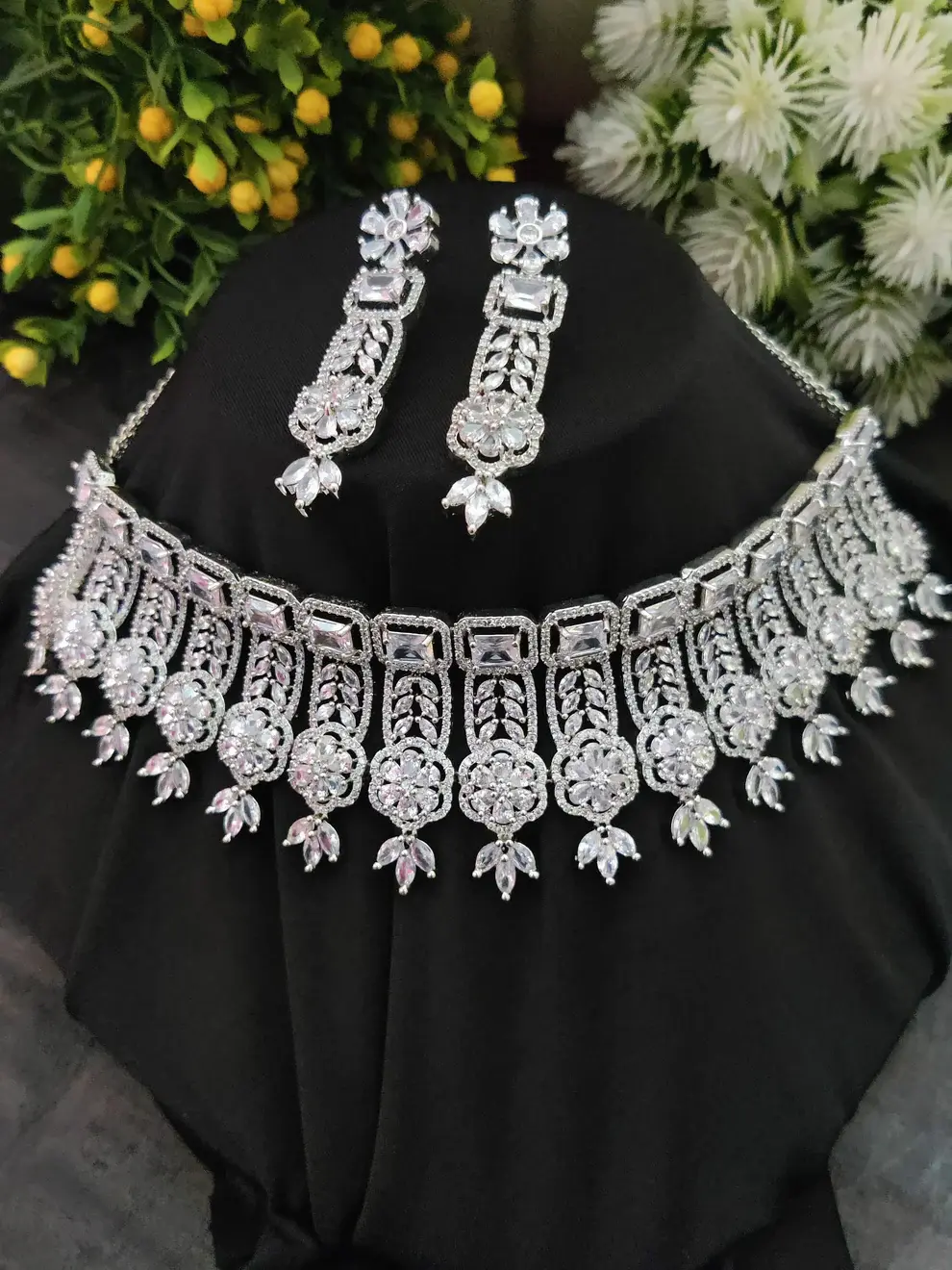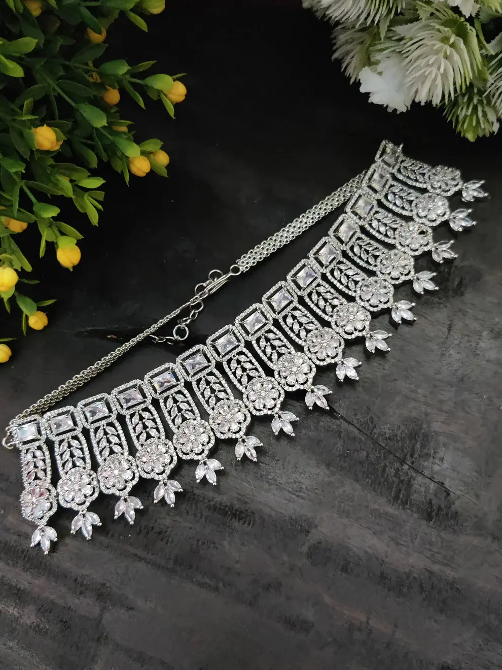 ✨ Silver-Toned White Zircon Choker Necklace Set ✨