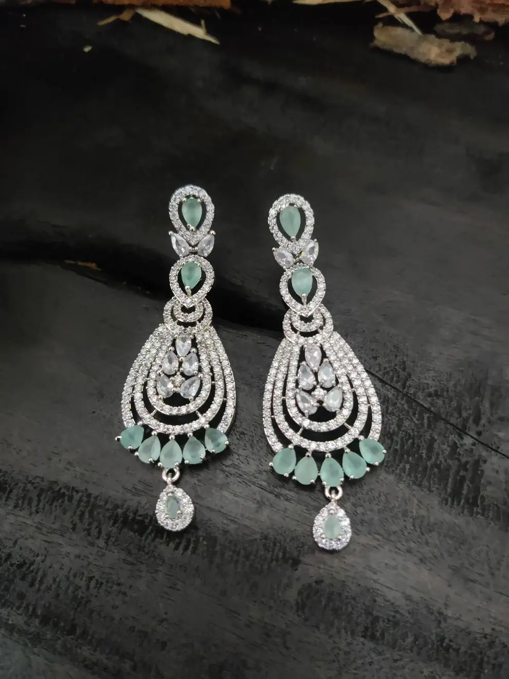 - Stone Type: Cubic Zirconia (White & Mint)
