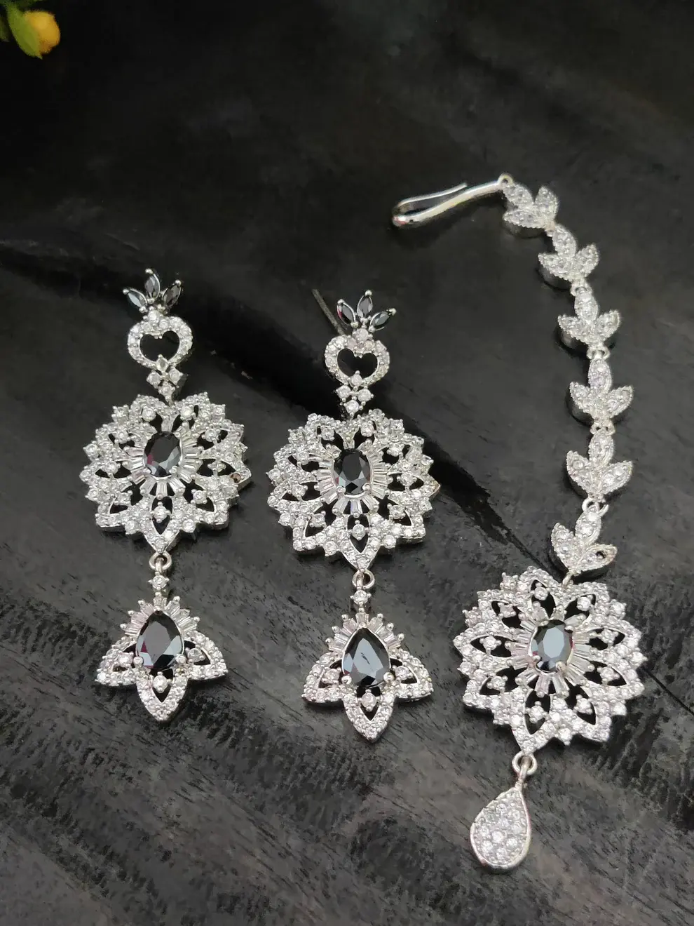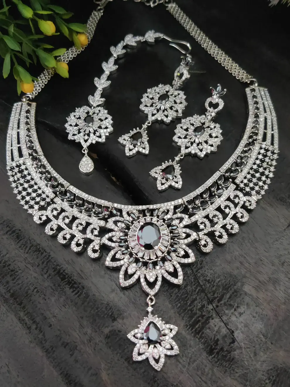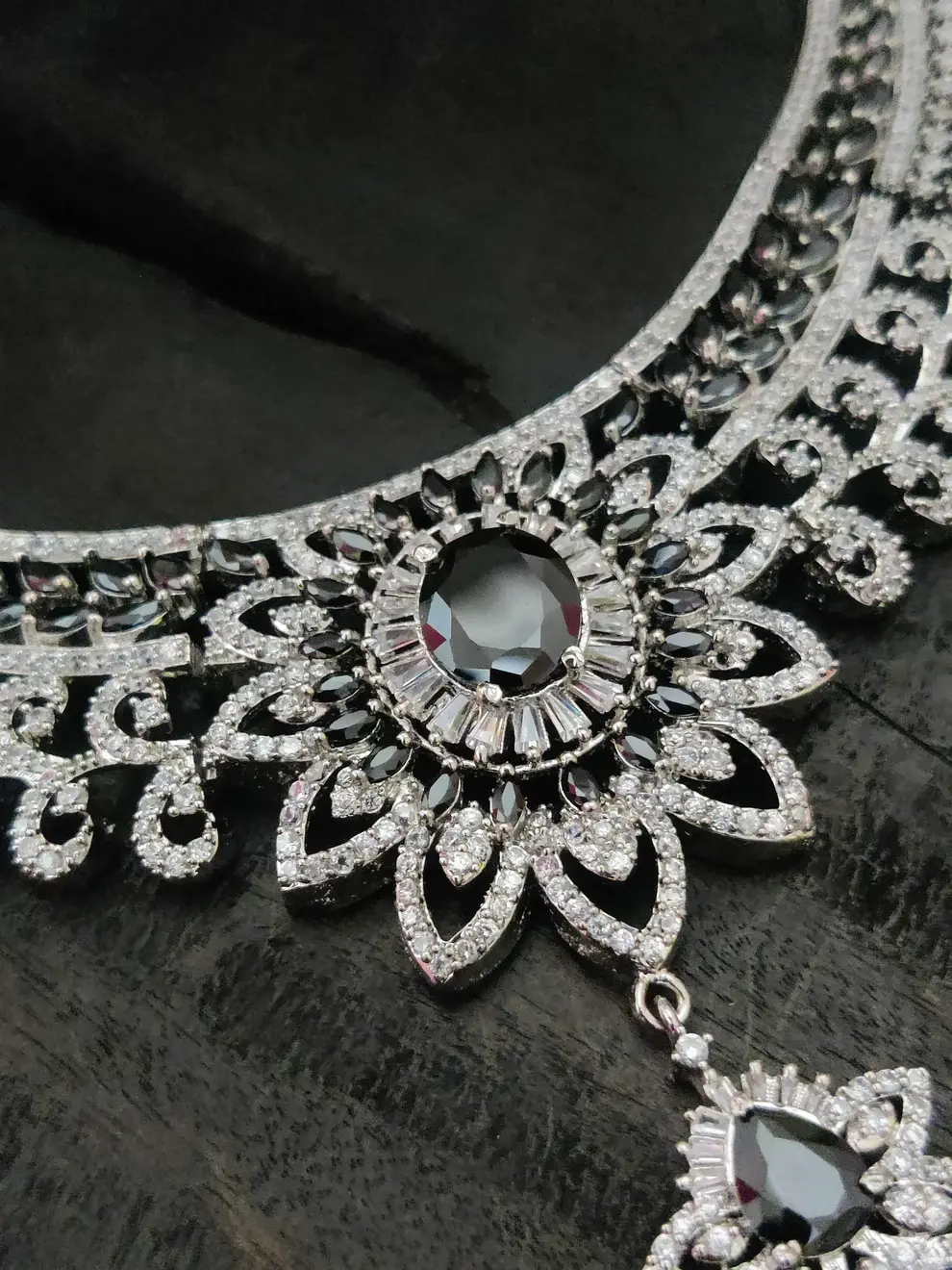✨ Silver-Toned Black Zircon Bridal Choker Set ✨