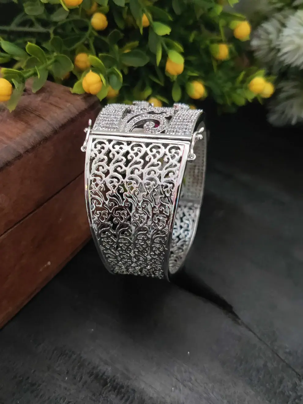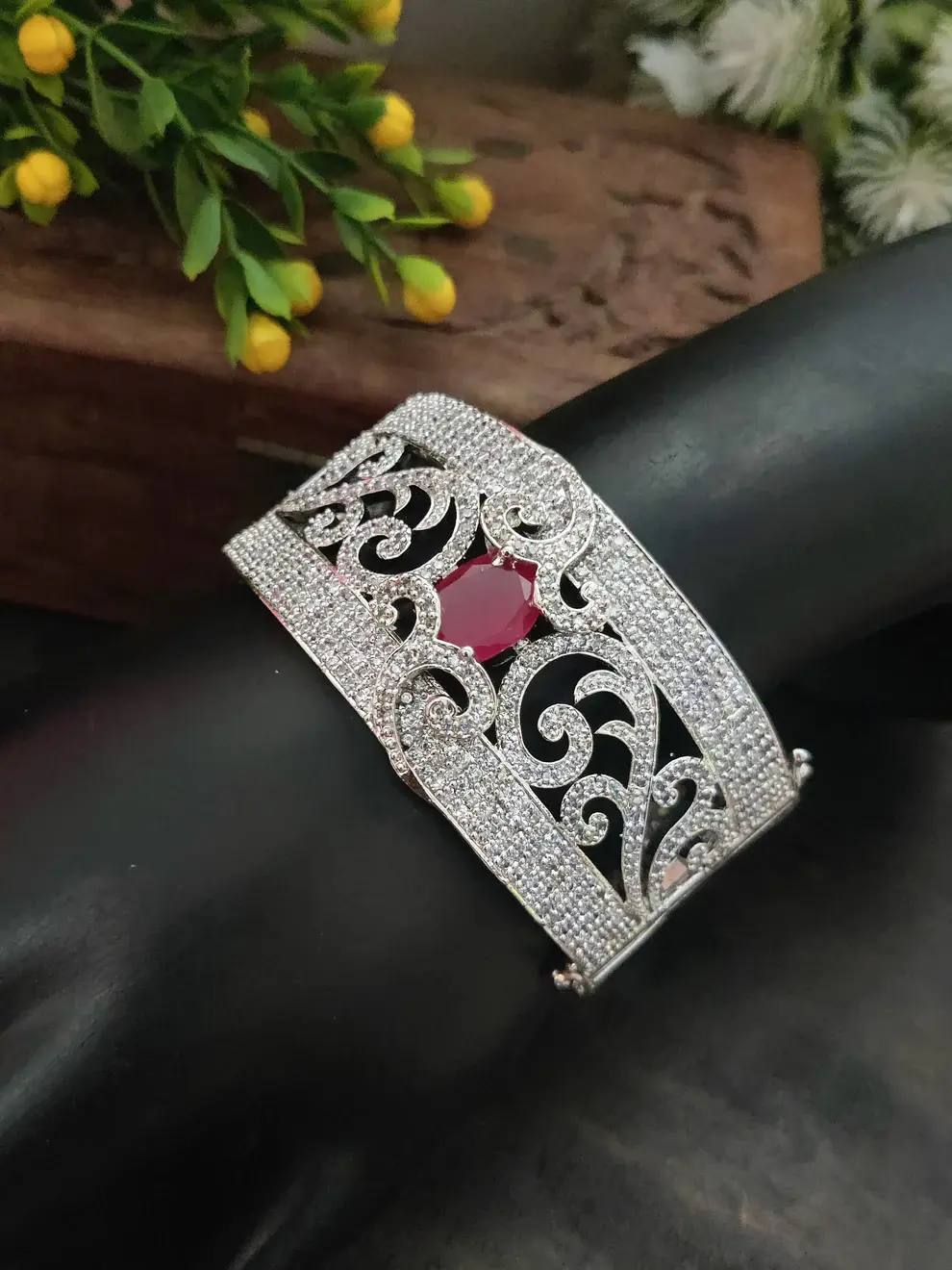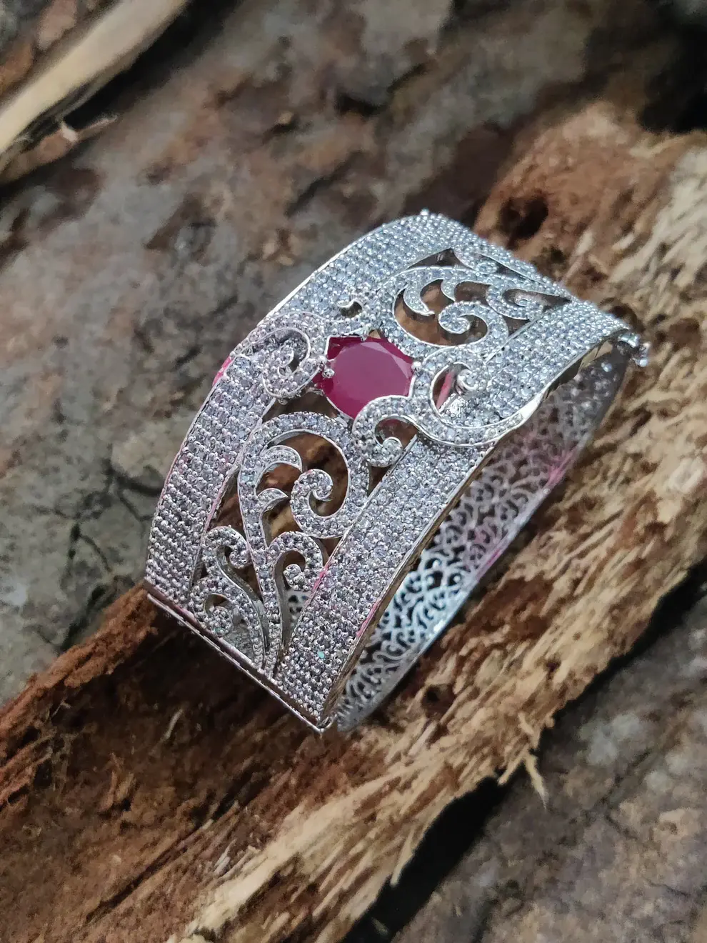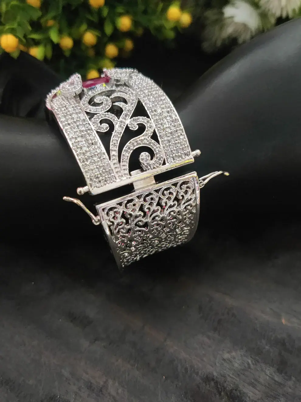 ✨ Silver-Toned White Cubic Zirconia Kada Bracelet – 58 gm ✨