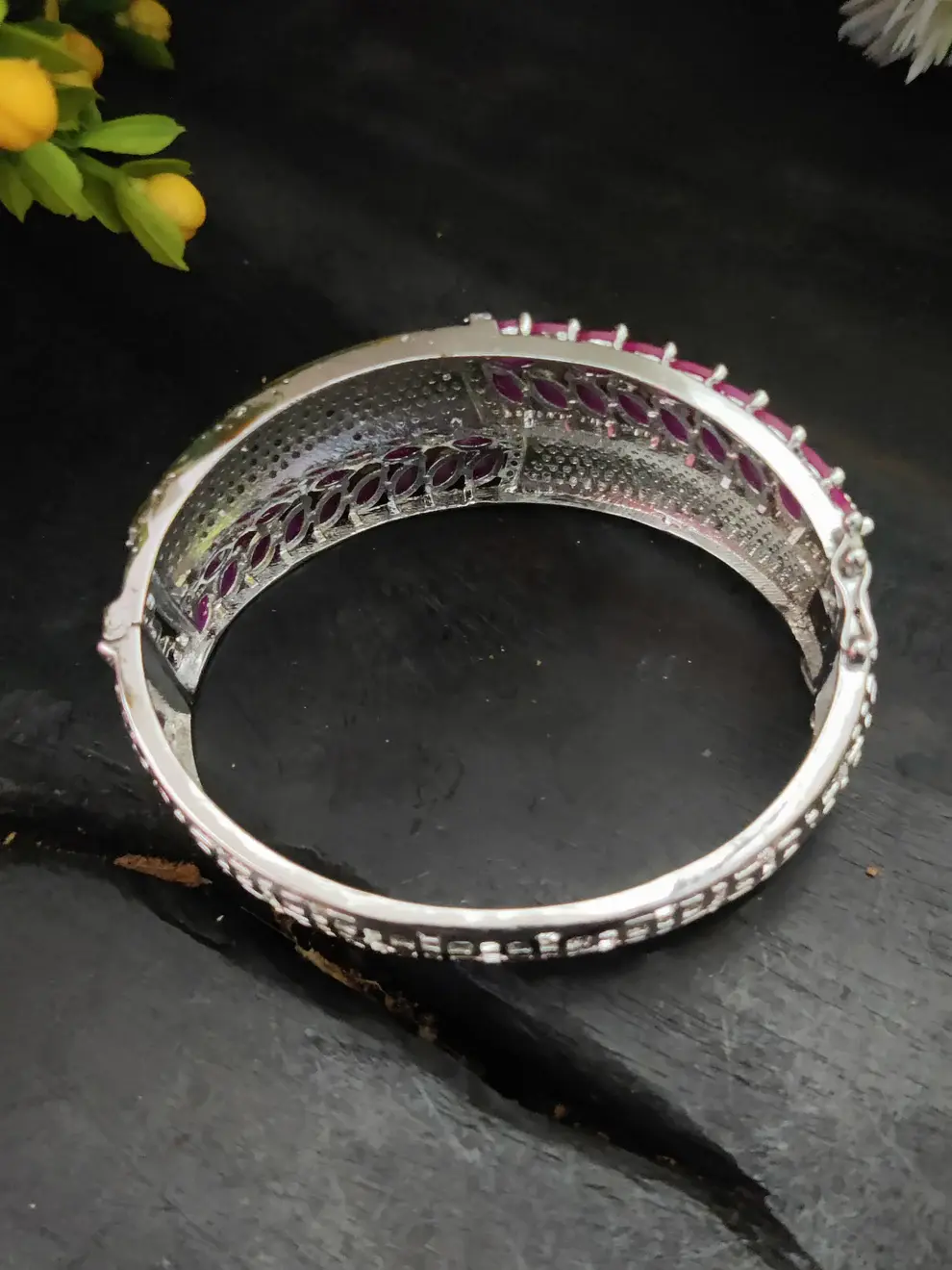 ✨ Silver-Toned White Cubic Zirconia Kada Bracelet – 33 gm ✨
