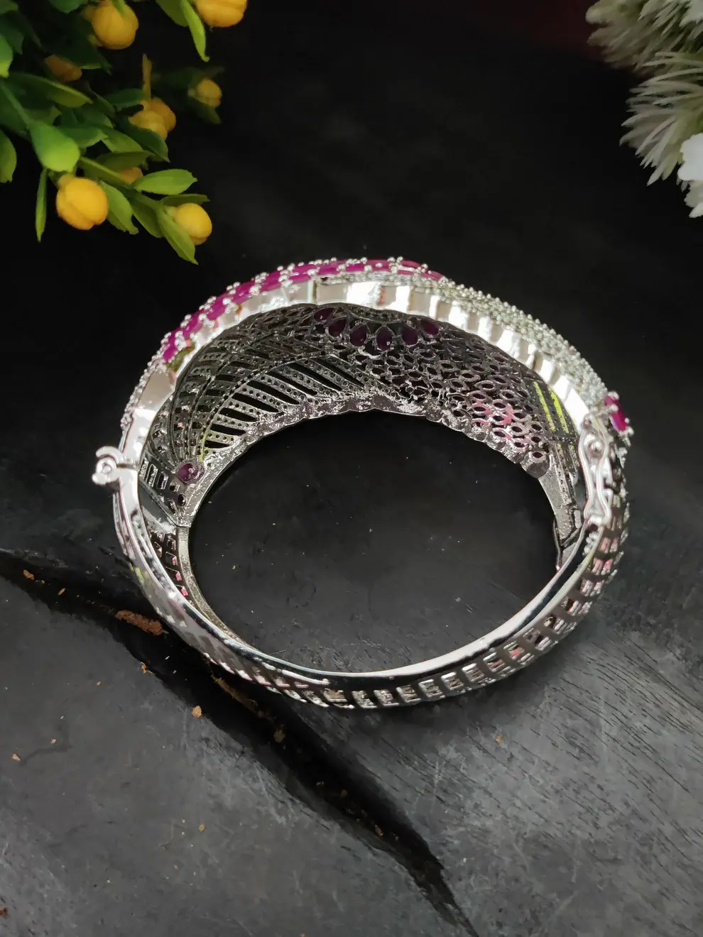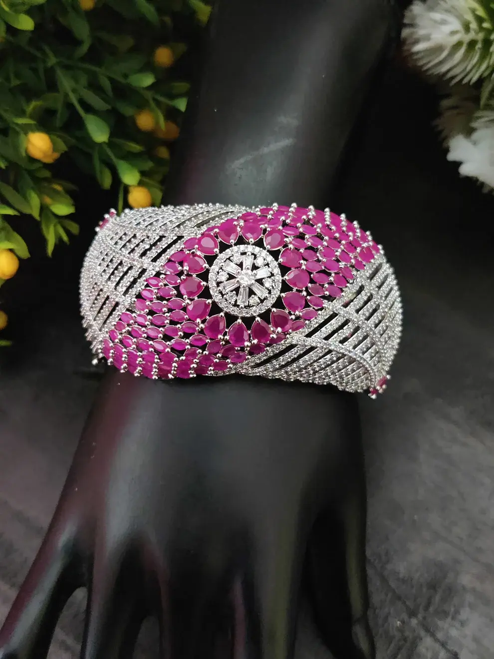 ✨ Silver-Toned White Cubic Zirconia Kada Bracelet – 57 gm ✨