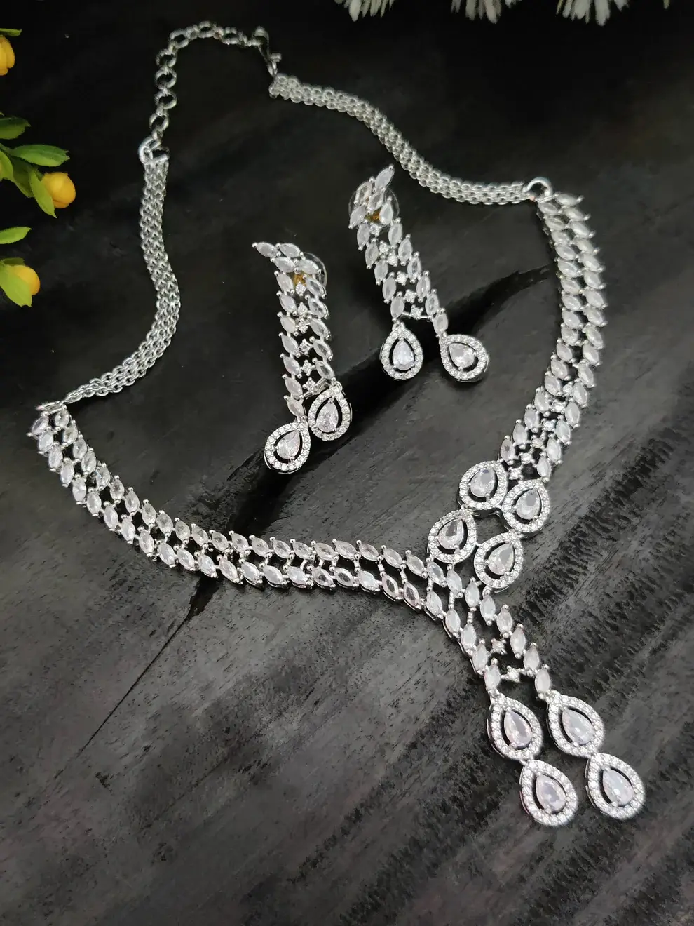 ✨ Silver-Toned Cubic Zirconia Necklace Set – White Stones ✨