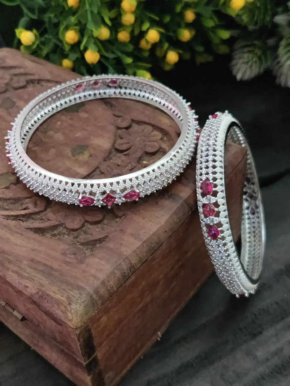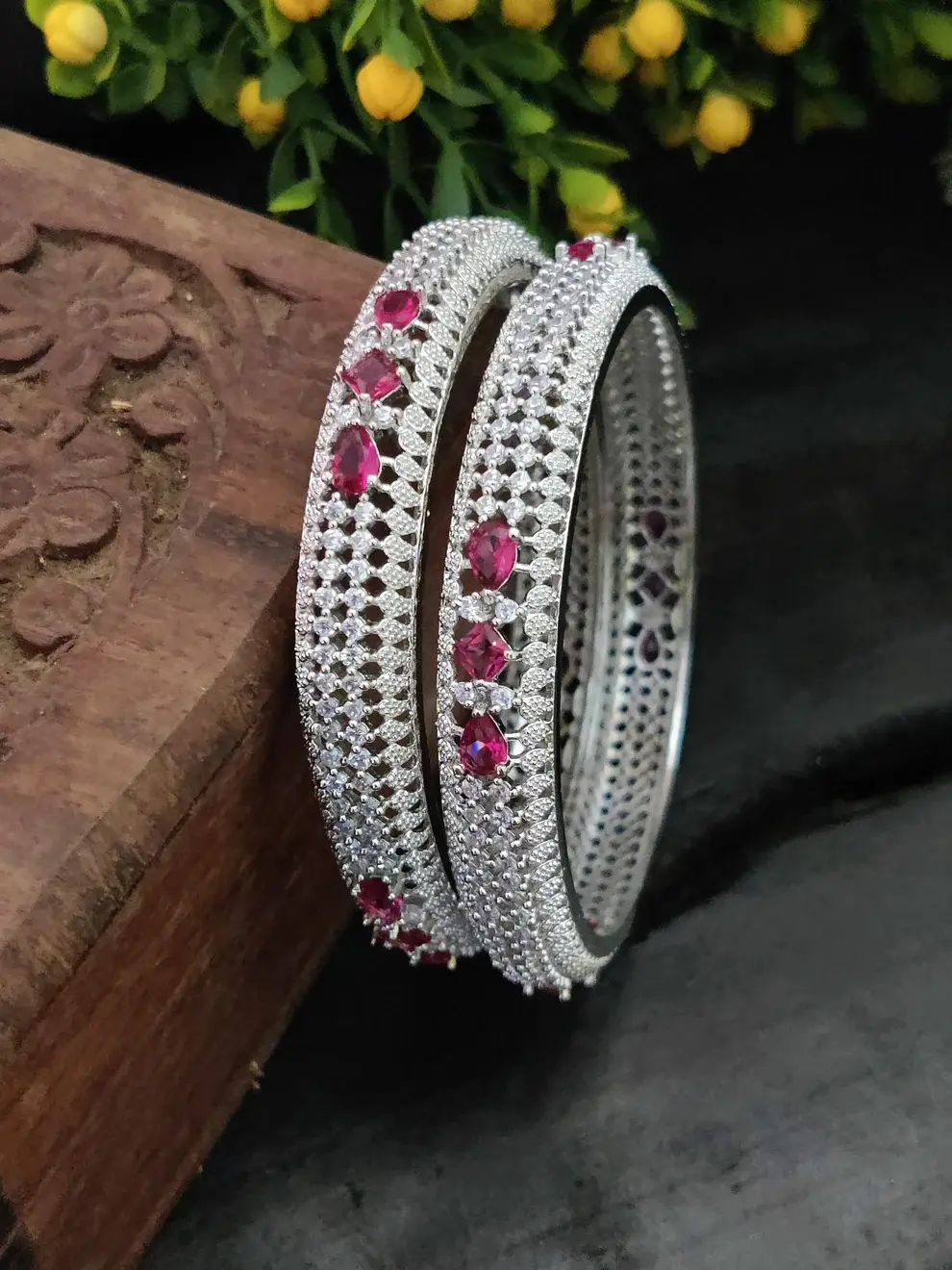 Sonamone Silver Toned Red Cubic Zircon Bangles