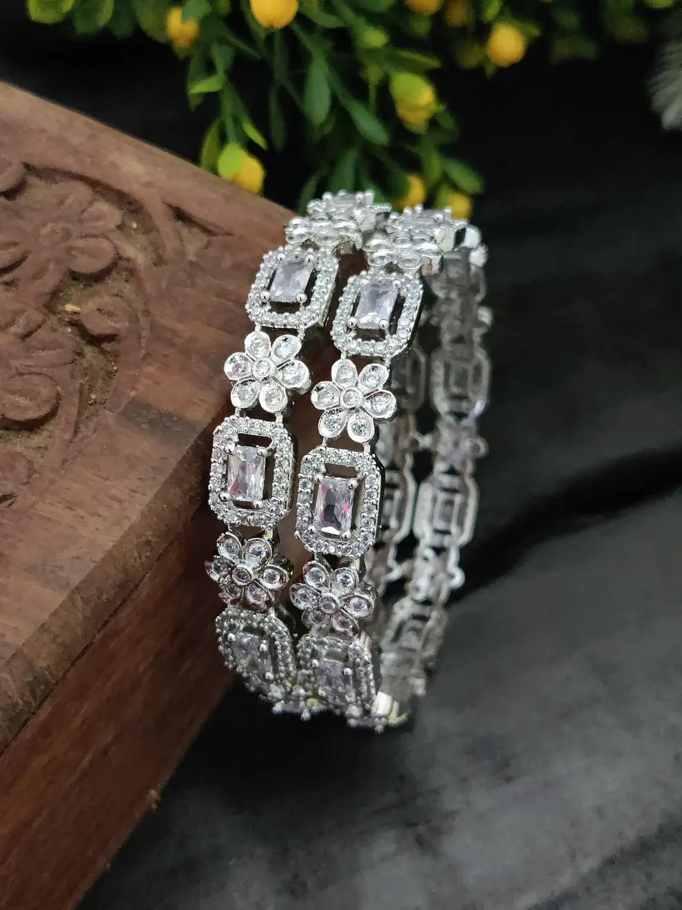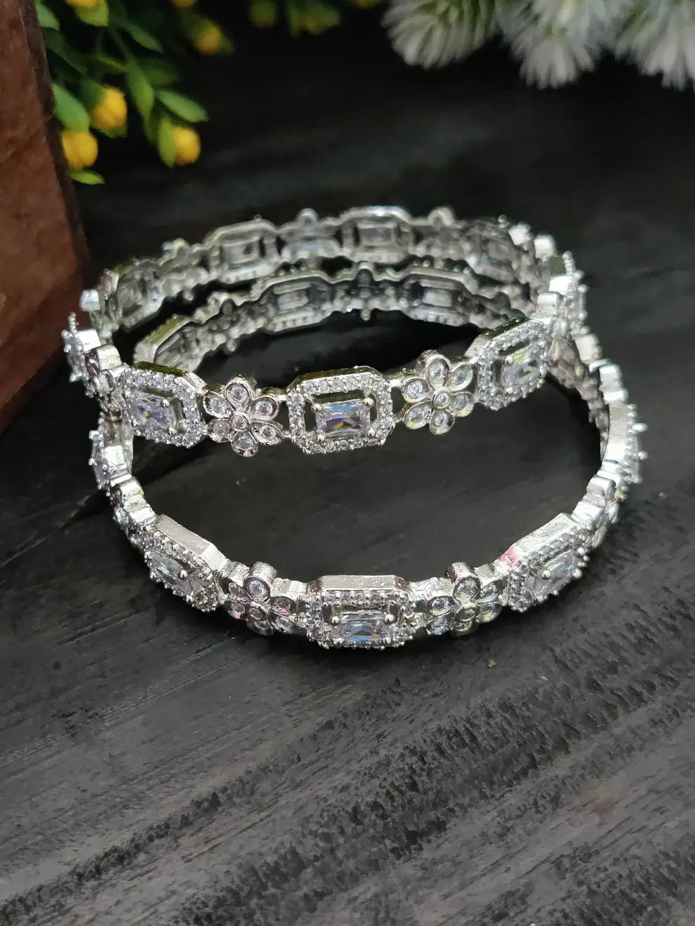 ✨ Silver-Plated Cubic Zirconia Bangles – Pack of 2 ✨