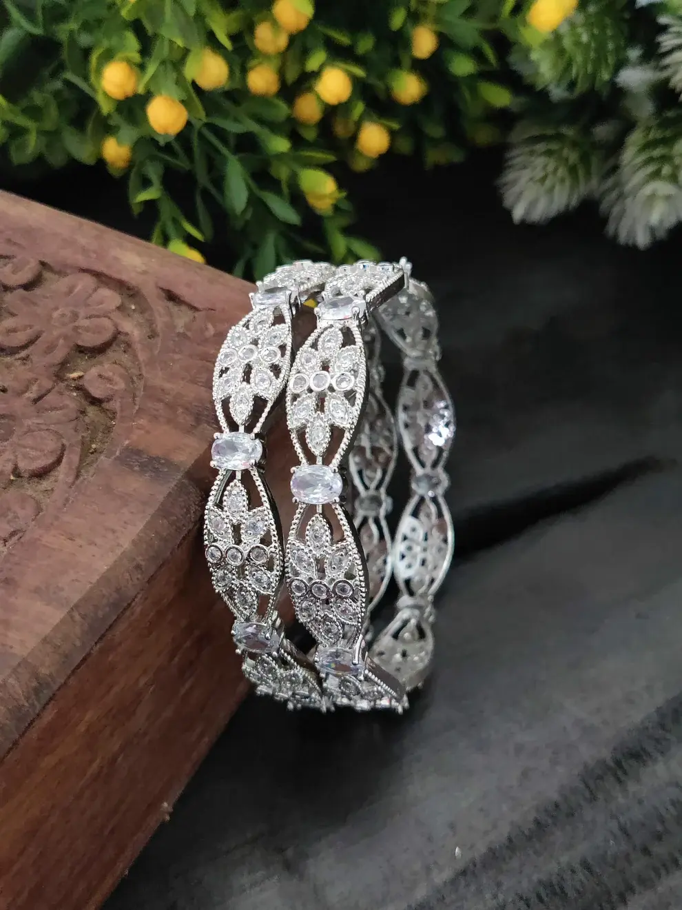 ✨ Silver-Plated Cubic Zirconia Bangles – Pack of 2 ✨
