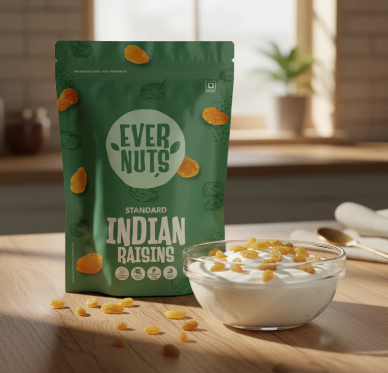 Buy Standard Indian Raisins Online from EverNuts — better sorted, plumper, and noticeably more refined than the everyday kind. These raisins add that extra touch without overdoing it.