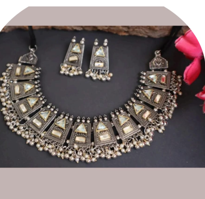 Stylish Boho Trible Antique Oxidized Stone Choker Necklace Jewelry Set Women for Girls