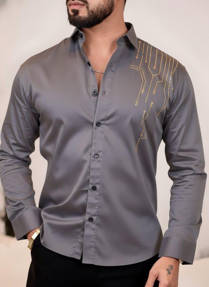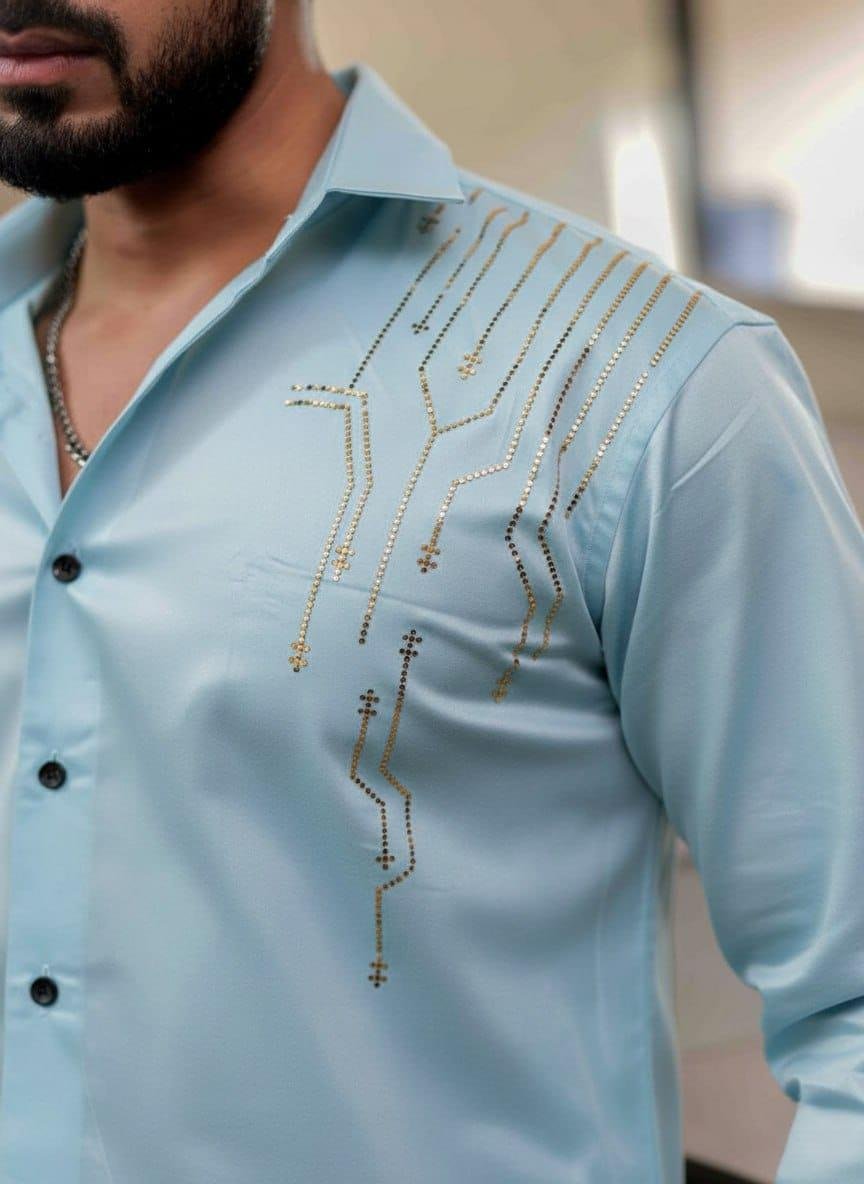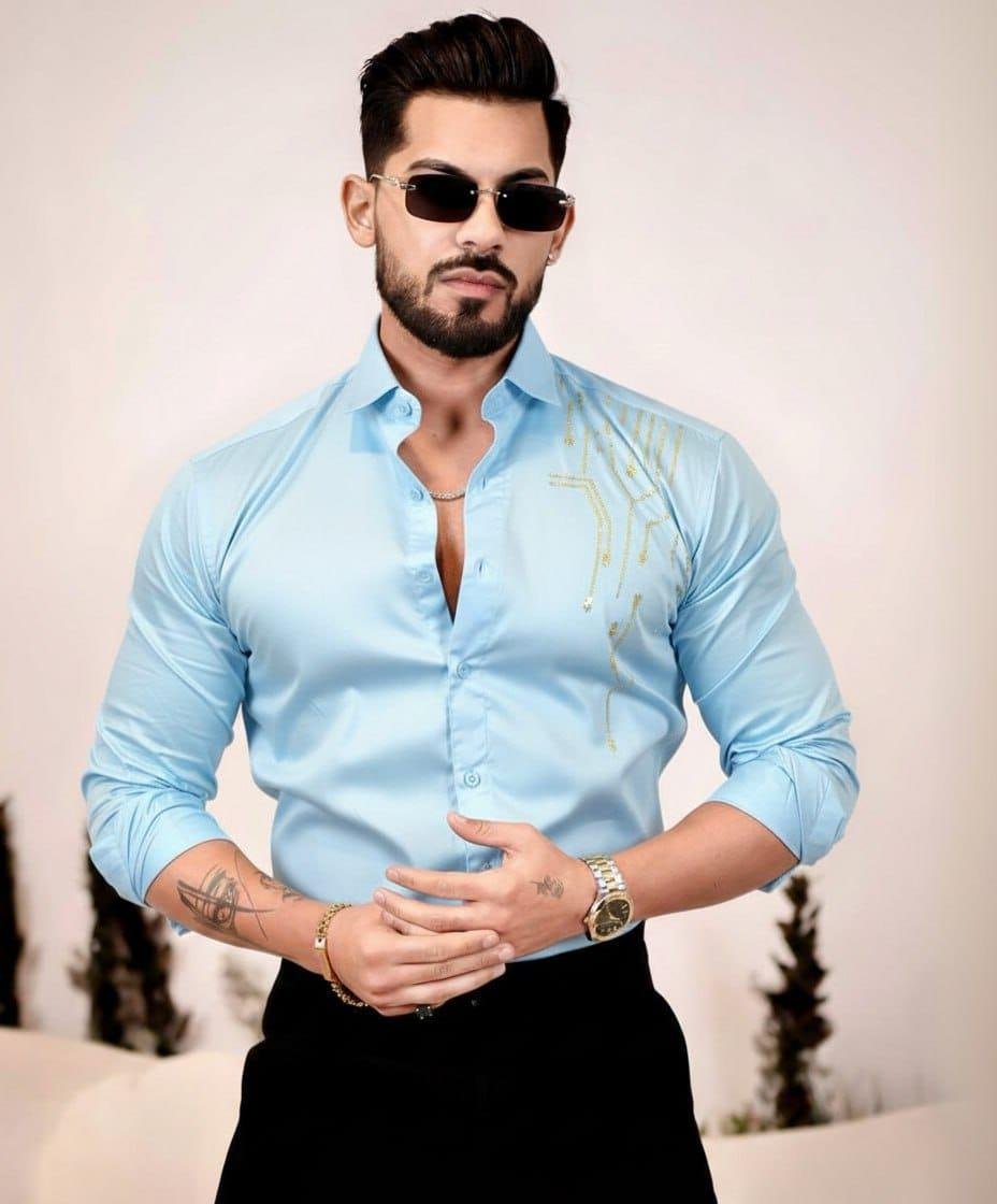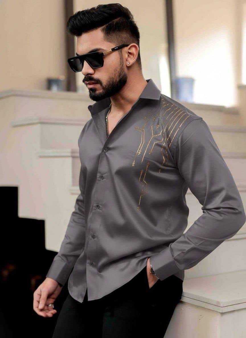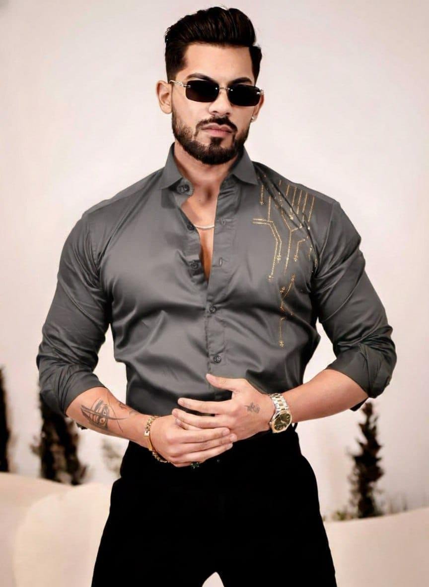The shirt features a solid or self-design pattern with a classic spread collar, giving it a clean and sophisticated appearance. Whether you're heading to the office, meeting friends, or attending a casual event, this shirt easily complements jeans, chinos, or trousers for a versatile outfit.