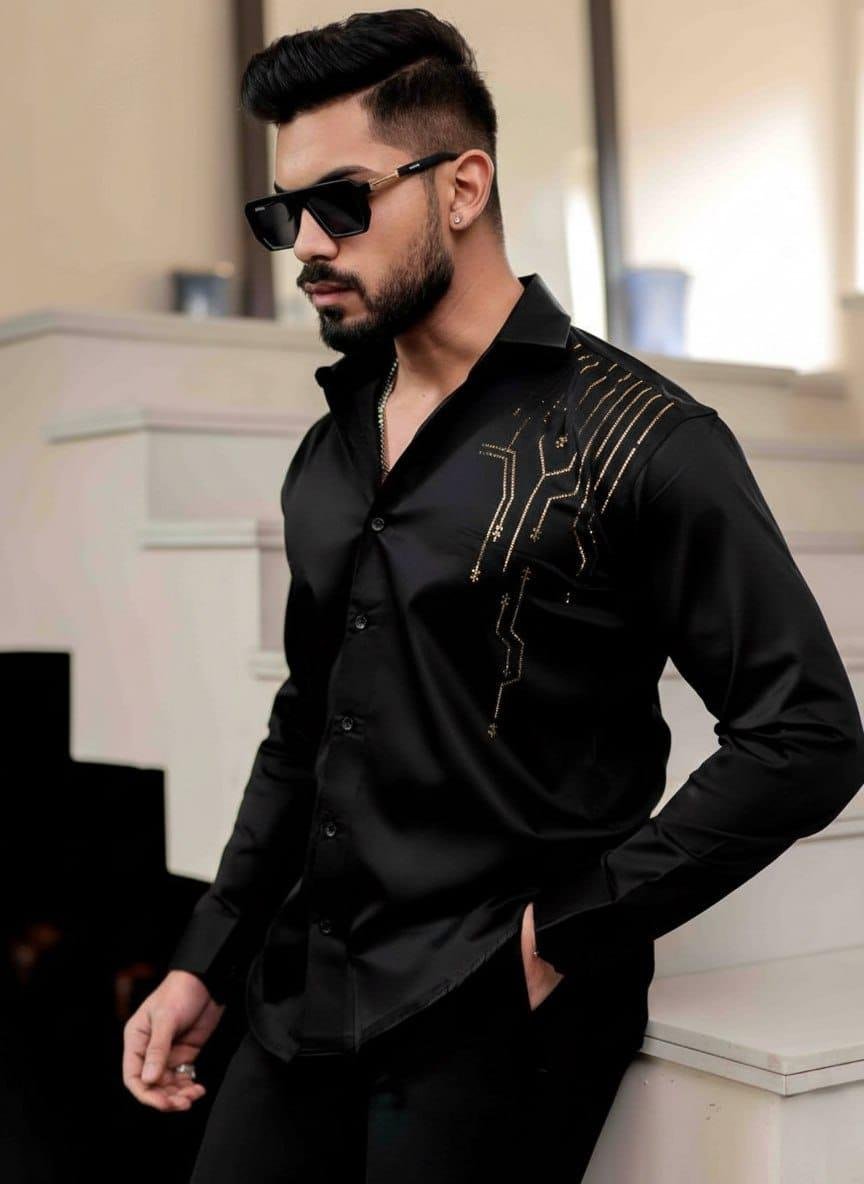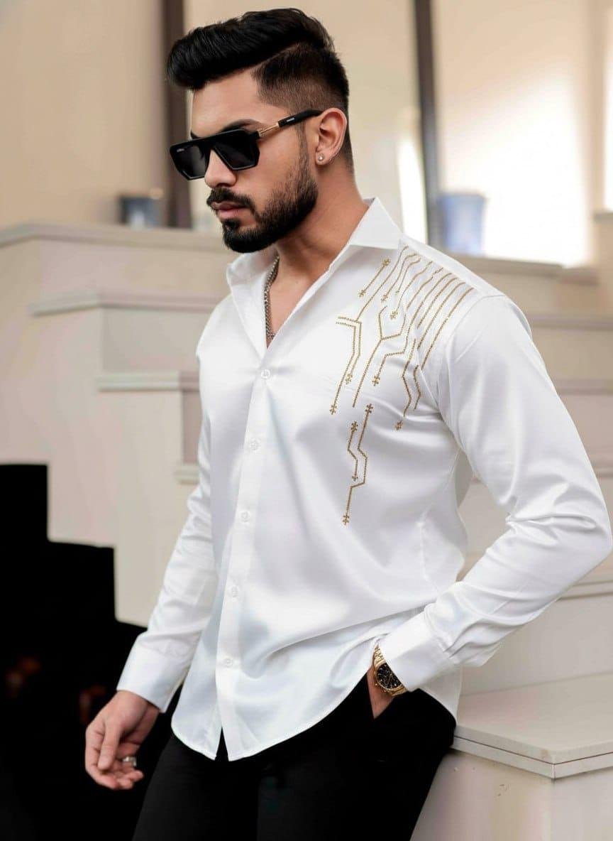 The shirt features a solid or self-design pattern with a classic spread collar, giving it a clean and sophisticated appearance. Whether you're heading to the office, meeting friends, or attending a casual event, this shirt easily complements jeans, chinos, or trousers for a versatile outfit