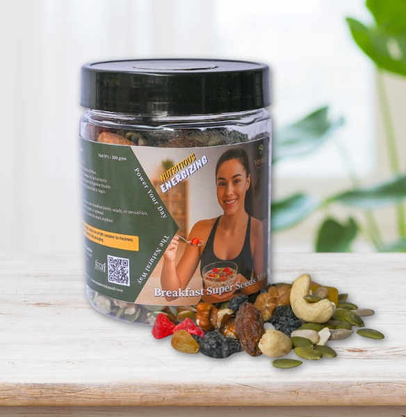 - Start your day the healthy way with Veora Organics Super Breakfast Seeds, a nutrient-packed blend of organic seeds, nuts, and dry fruits sourced directly from nature. This wholesome mix is carefully curated to give you the perfect balance of protein, fibber, healthy fats, vitamins, and minerals, making it an ideal choice for your daily breakfast or anytime snacking.