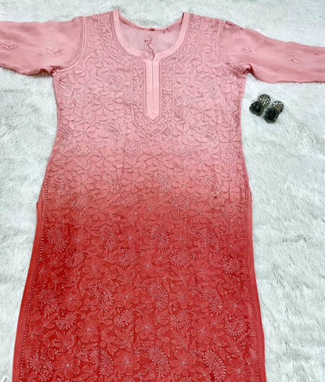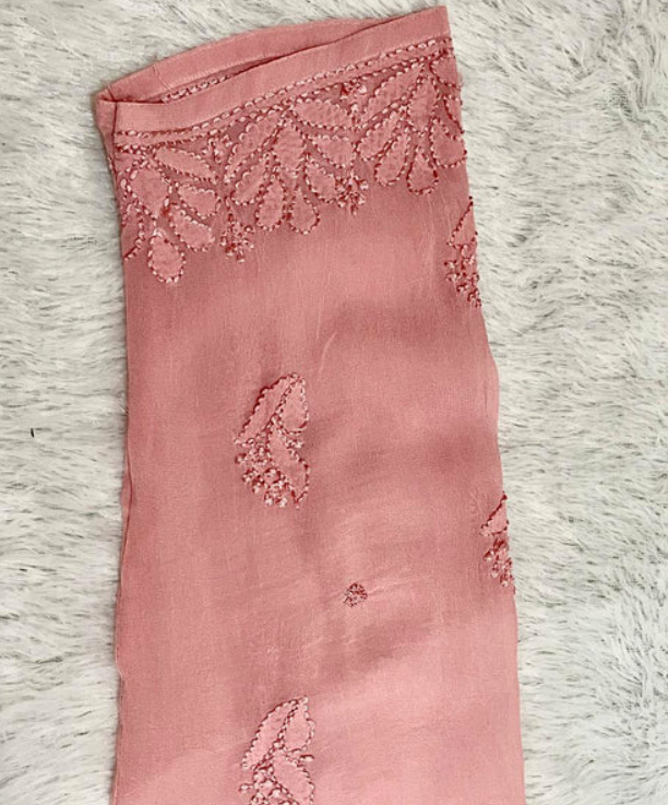 - Work: Full front Jaal design in fine shadow Resham (thread) Chikankari, all done by hand