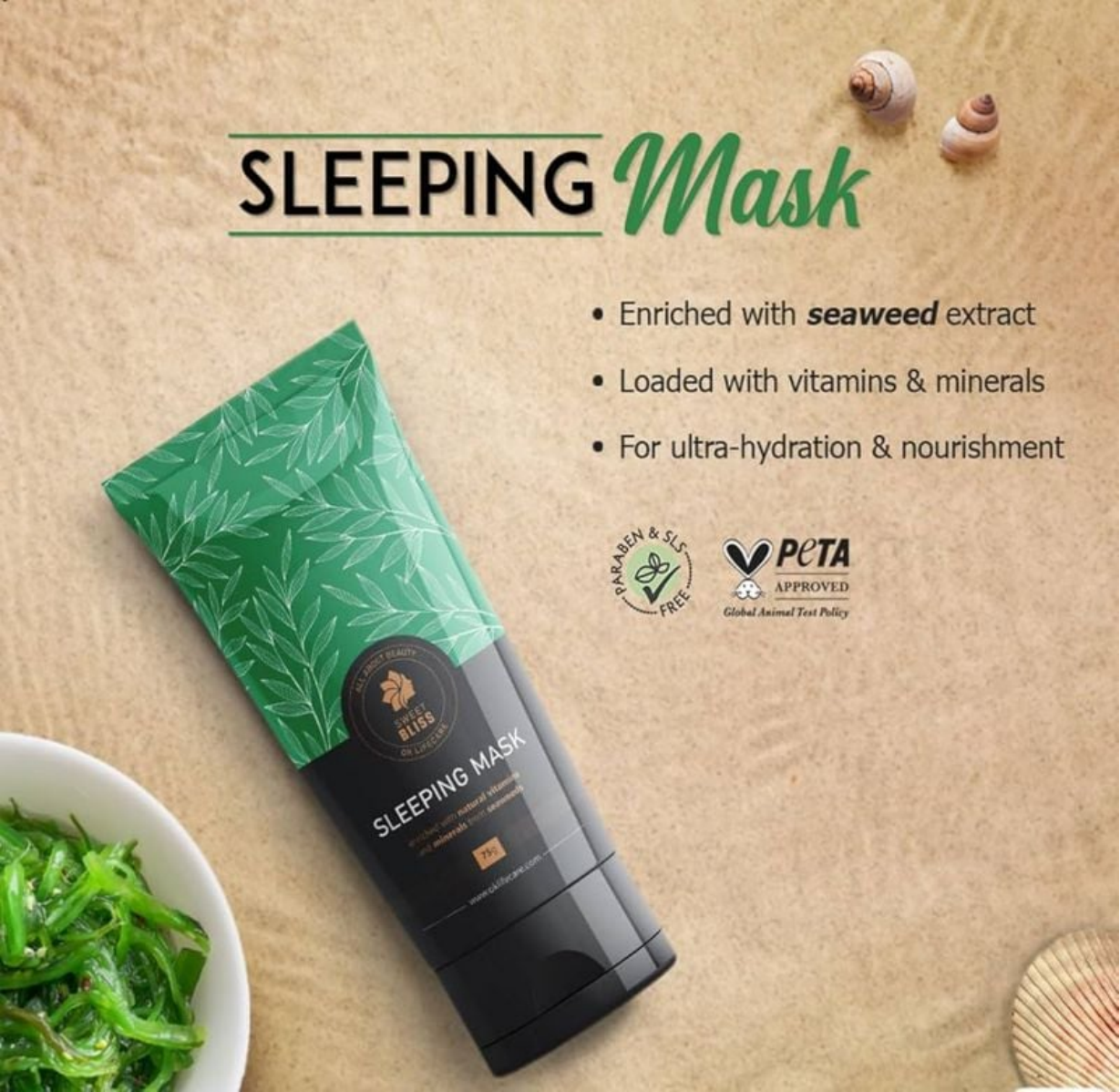 Sweet Bliss Sleeping Mask is an overnight skincare treatment formulated to nourish and refresh the skin while you sleep. Enriched with natural vitamins and minerals from seaweed, it helps hydrate the skin, improve texture, and restore a healthy, radiant appearance by morning. Its lightweight, non-greasy formula absorbs easily and works throughout the night, leaving skin soft, smooth, and revitalized. Suitable for all skin types and ideal for daily nighttime skincare routines.