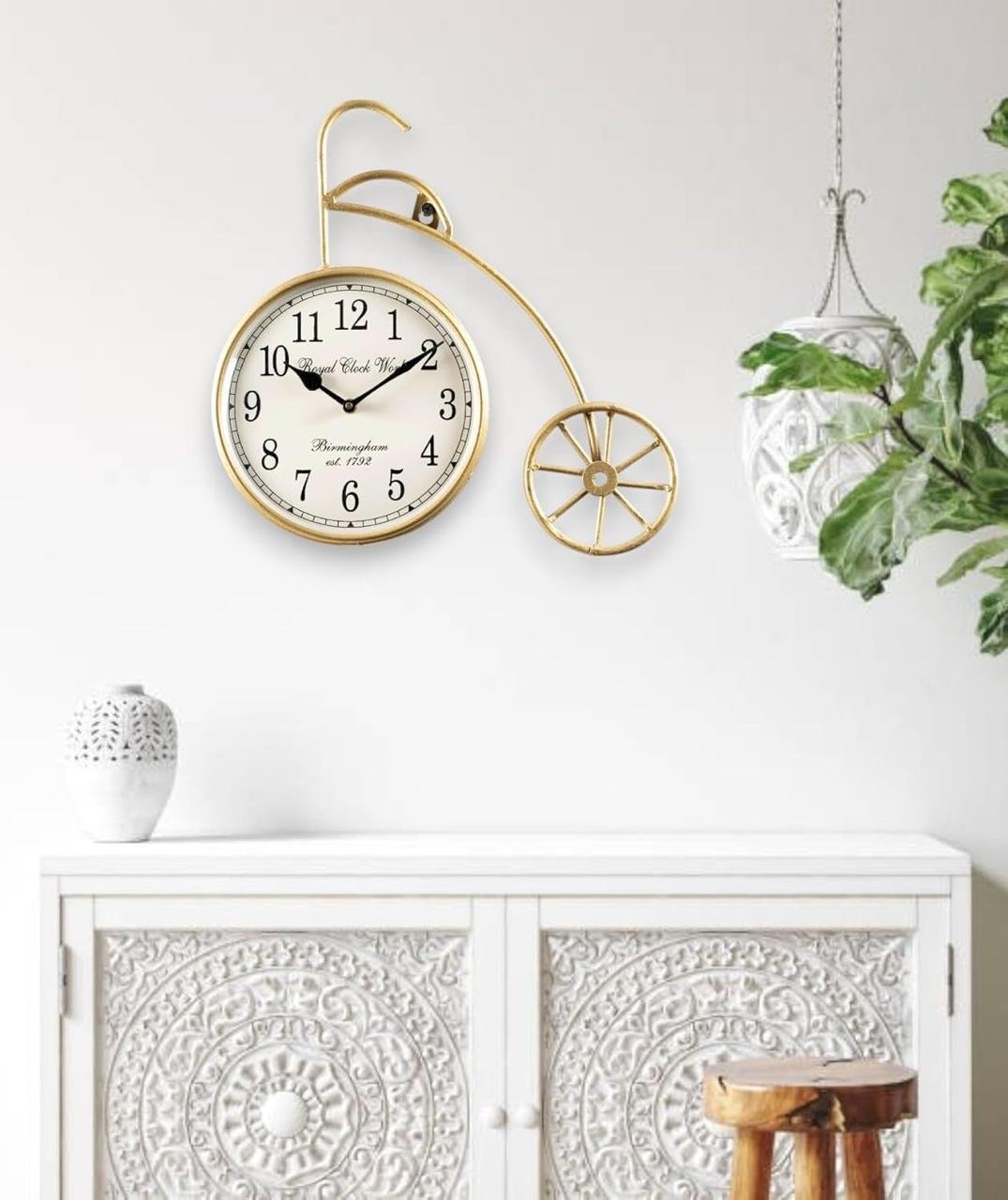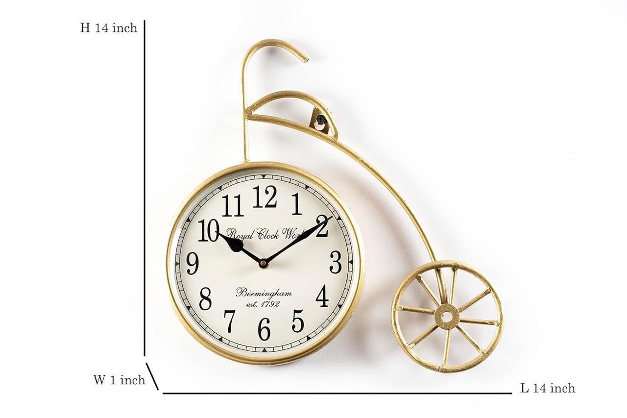 The Brown Story Bicycle Analog Cycle Shaped Golden Wall Clock for Home, Living Room, Bedroom, Office