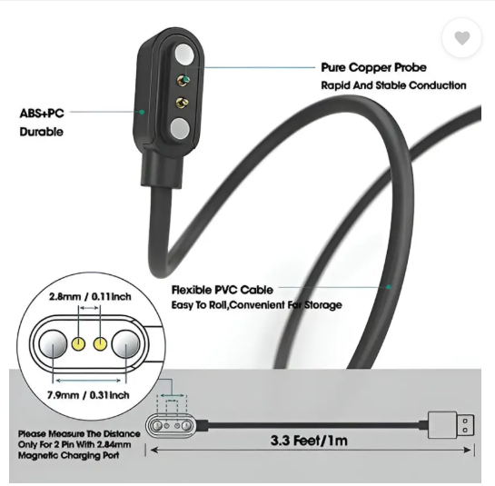 - Model Number: Original 2 Pin Magnetic 3.5 mm Pin Length Watch Quick Charging Cable