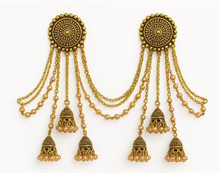 - Design: Bahubali-inspired long chain with classic jhumka detailing