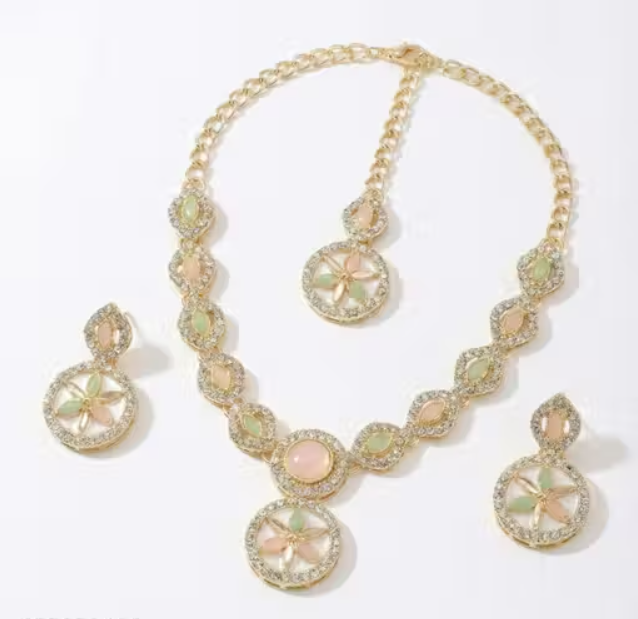 Traditional Kundan Necklace Set for Women | Gold Plated Pastel Stone Ethnic Jewelry Set