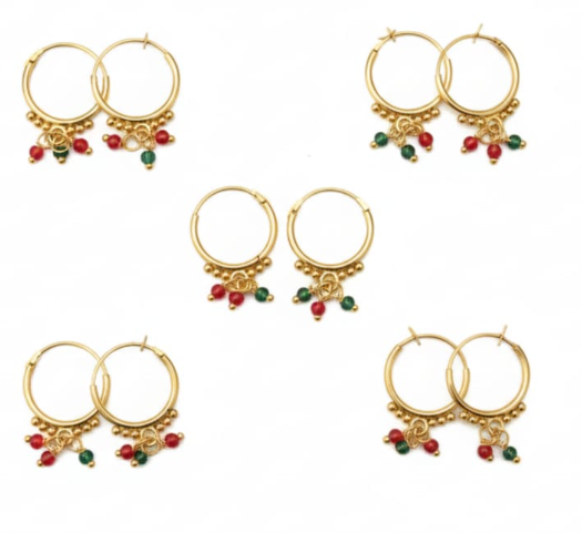 Traditional Punjabi-Style Gold-Plated Bali Hoop Earrings ✅( Pack of 5 )