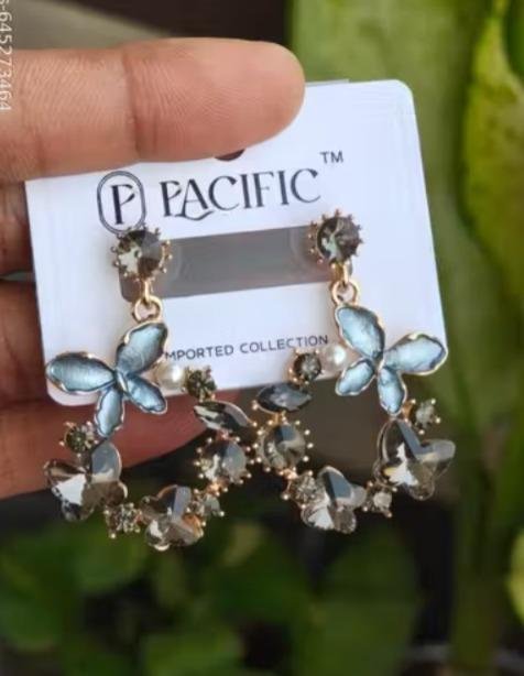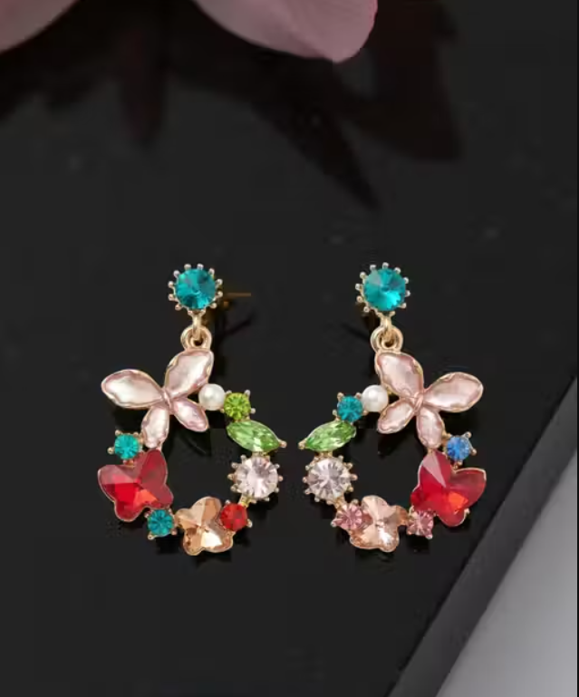 Trendy Multicolor Butterfly's Crystals Drops Earrings for Women