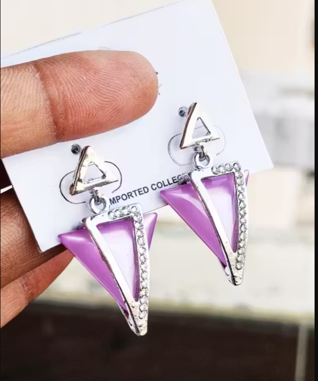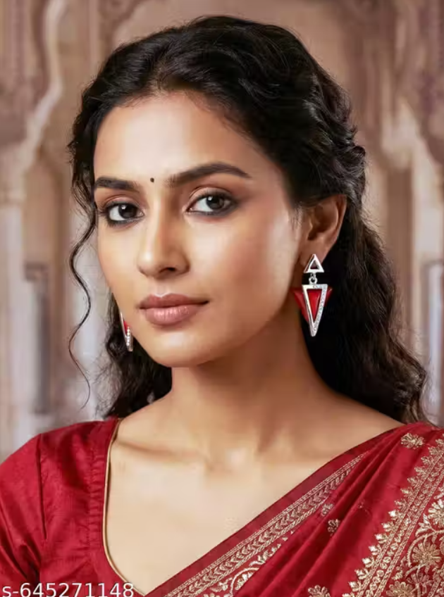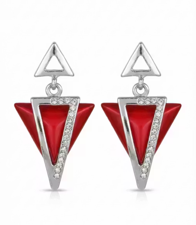 Trendy Red Geometric Triangle Drops Earrings for Women | Stylish Partywear Stone-Studded Earrings