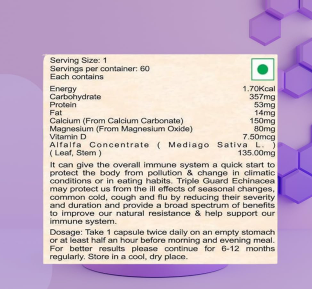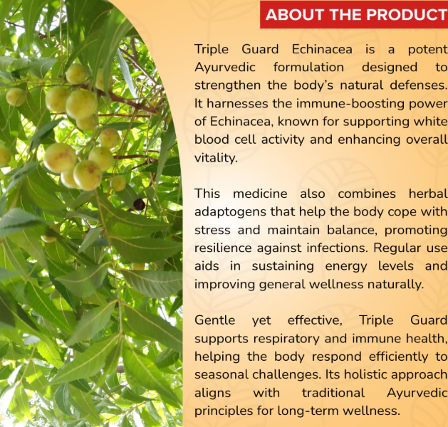 - triple guard echinaceae may protect us from the ill effects of seasonal changes, common cold, cough and flu by reducing their severity and duration and provide a broad spectrum of benefits to improve our natural resistance and help support our immune system.