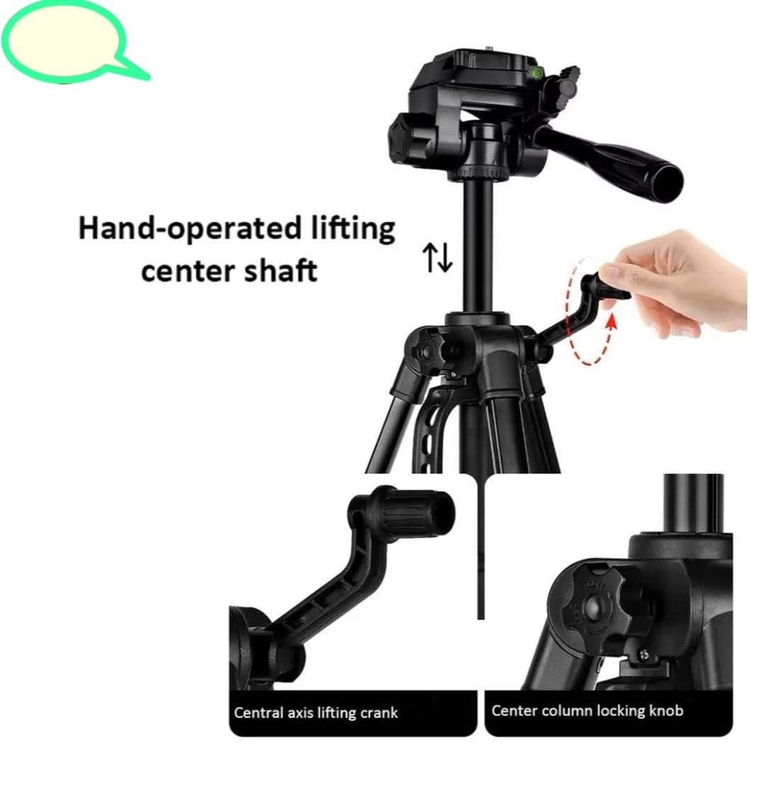 Professional Tripod 3366 for DSLR, Camera, Mobile Phone Height upto 4.6 ft Max load 4 kg. Portable Lightweight ABS+Metal. Phone Holder. Hand operated lifting shaft. With carry Bag. Black