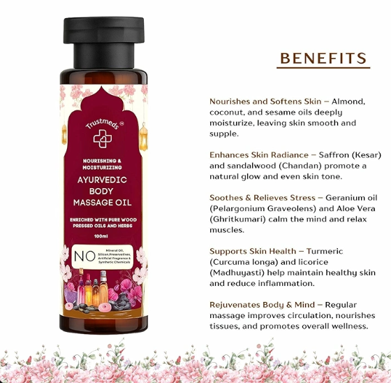 Trustmeds Body Massage Oil 100ml - Therapeutic Abhyanga Oil for Stress Relief, Muscle Relaxation & Skin Glow.