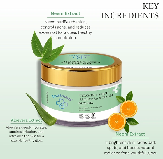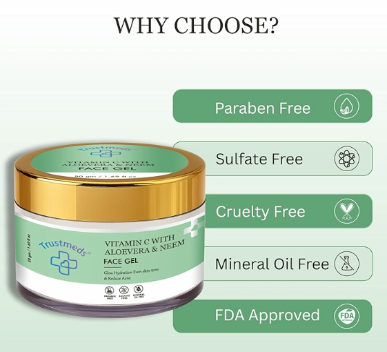 Trustmeds Vitamin C, Aloe Vera & Neem Face Gel – Glow & Acne Control