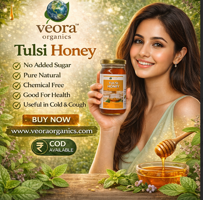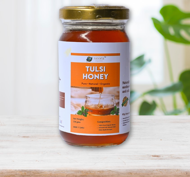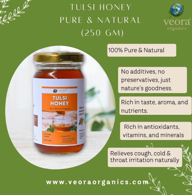 Experience the perfect blend of nature’s sweetness and wellness with Veora Organics Tulsi Honey – Pure & Natural (250 gm). Harvested directly from bees that feed on Tulsi (Holy Basil) flowers, this honey is 100% pure, natural, unprocessed, and chemical-free.