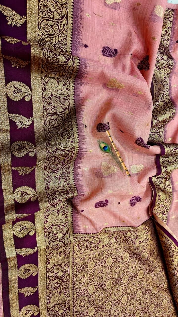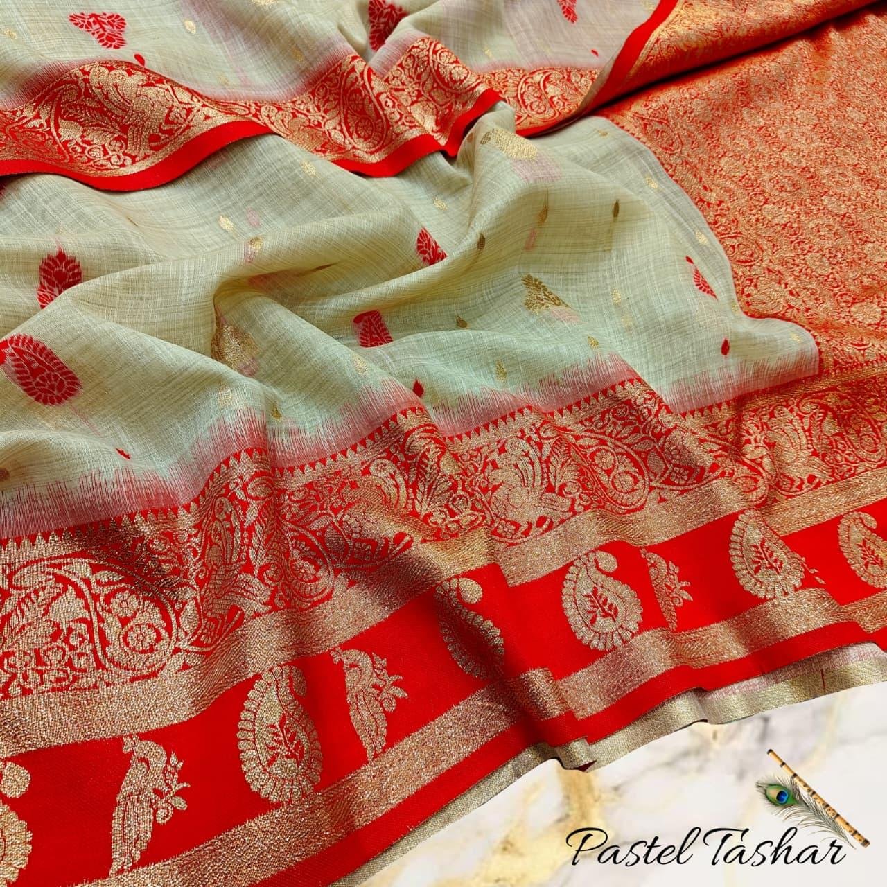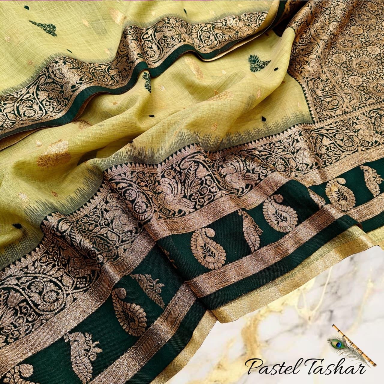 TUSSAR BENARASI SAREE WITH PASTEL COLOUR CONTRAST BORDER