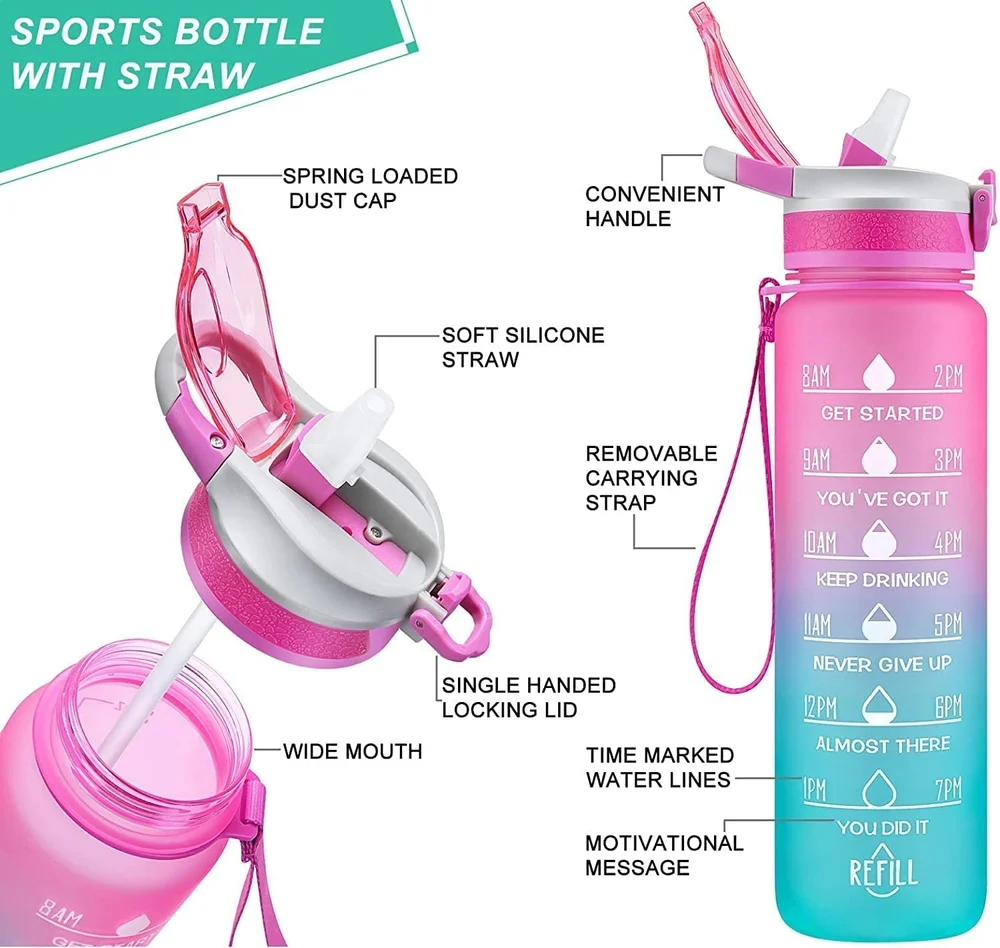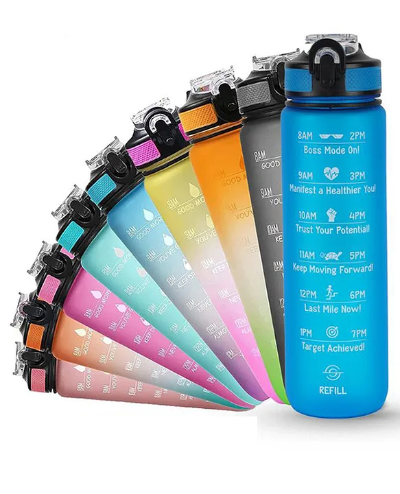 - Motivational & Time Marker Design: Our motivational water bottle 1 ltr features unique inspirational quotes and hourly time markers that help measure your daily water intake. It serves as a constant reminder to stay hydrated, making it the perfect companion during workouts, office hours, travel, or at school. Whether it's for appetite control, boosting energy, or improving skin health, this water bottle with measurement helps support a healthier lifestyle