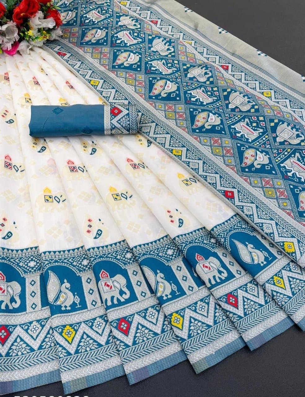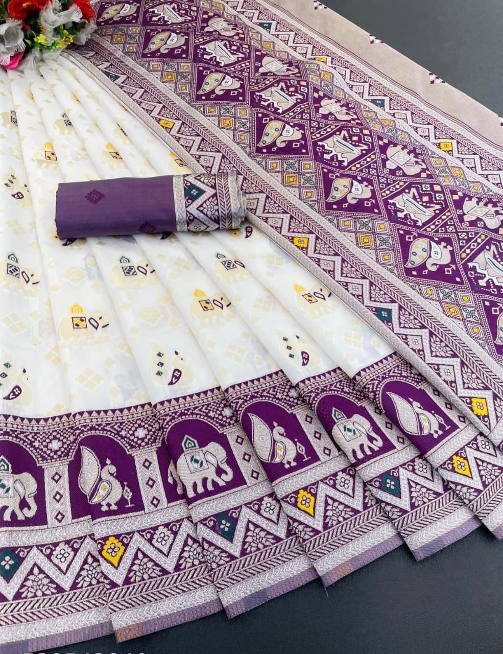 - Their jacquard sarees are known for woven patterns and comfort, popular compared to heavier silk or Banarasi types.
