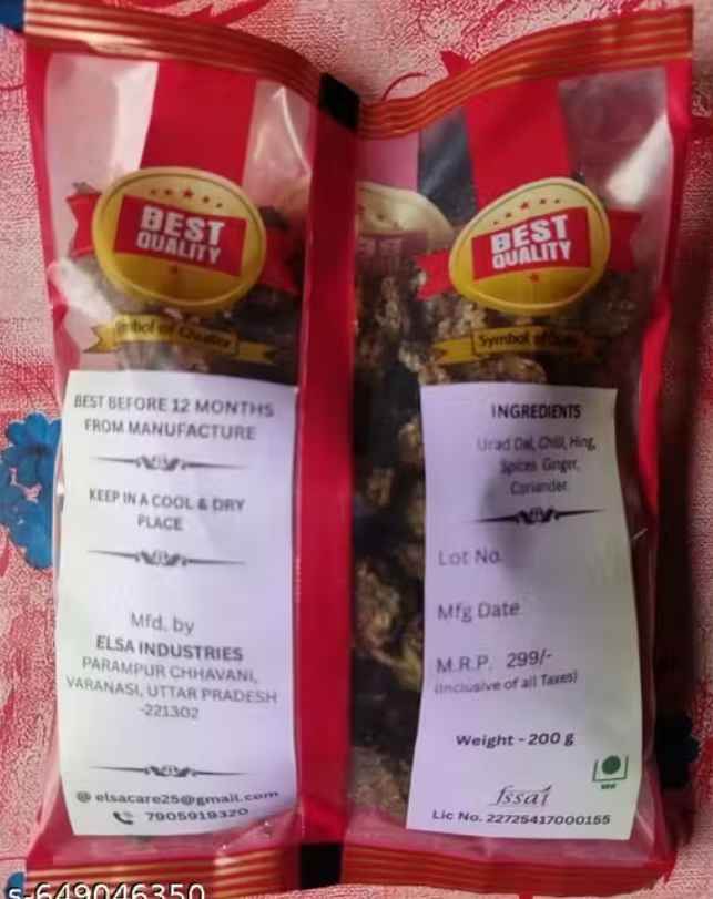 Urad Dal (Black Gram), Salt, Red Chilli, Garlic, Ginger, Ajwain/Jeera, Traditional Indian Spices.