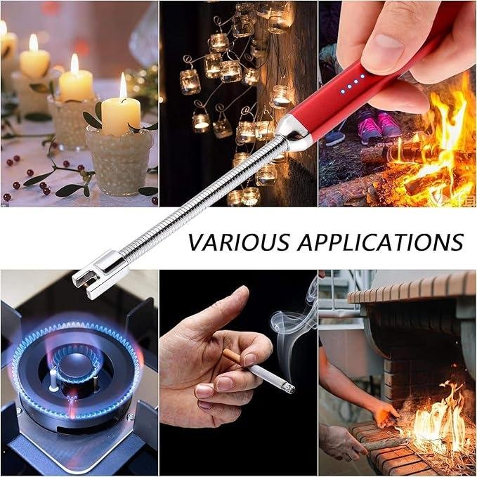 - Lighter Long Flexible Electric Arc USB Rechargeable Windproof Flameless Electronic Smoking Plasma Lighters for Multipurpose Like Candles Grill BBQ Smoking Fireplace Survival StoveDescription SAFETY PROTECTION ENVIRONMENTALLY FRIENDLY For security reasons, the candle lighter has 8 fold safety protection design, 7 seconds automatic power off and double switch ensure safe use. Compared with other lighters, our candle lighter will make less noise.ECO FRIENDLY Say bye to the butane lighter and disposable plastics, the USB rechargeable lighter is flamelesswindproof and no bad smell and can light up all the things which you were using with gas lighterLED POWER DISPLAY The rechargeable electric plasma lighter has an indicator that tells you when you shall recharge for the long lighters. When 4 LED blue lights turn on, it is full charged, the li battery can be recycled use more than many times. With TYPE C charging interface which is more durable.