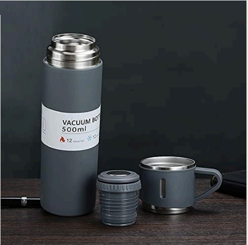 Vacuum Flask Set with 2 Cups, Double Wall Stainless Steel Thermo 500ml Vacuum Insulated Bottle