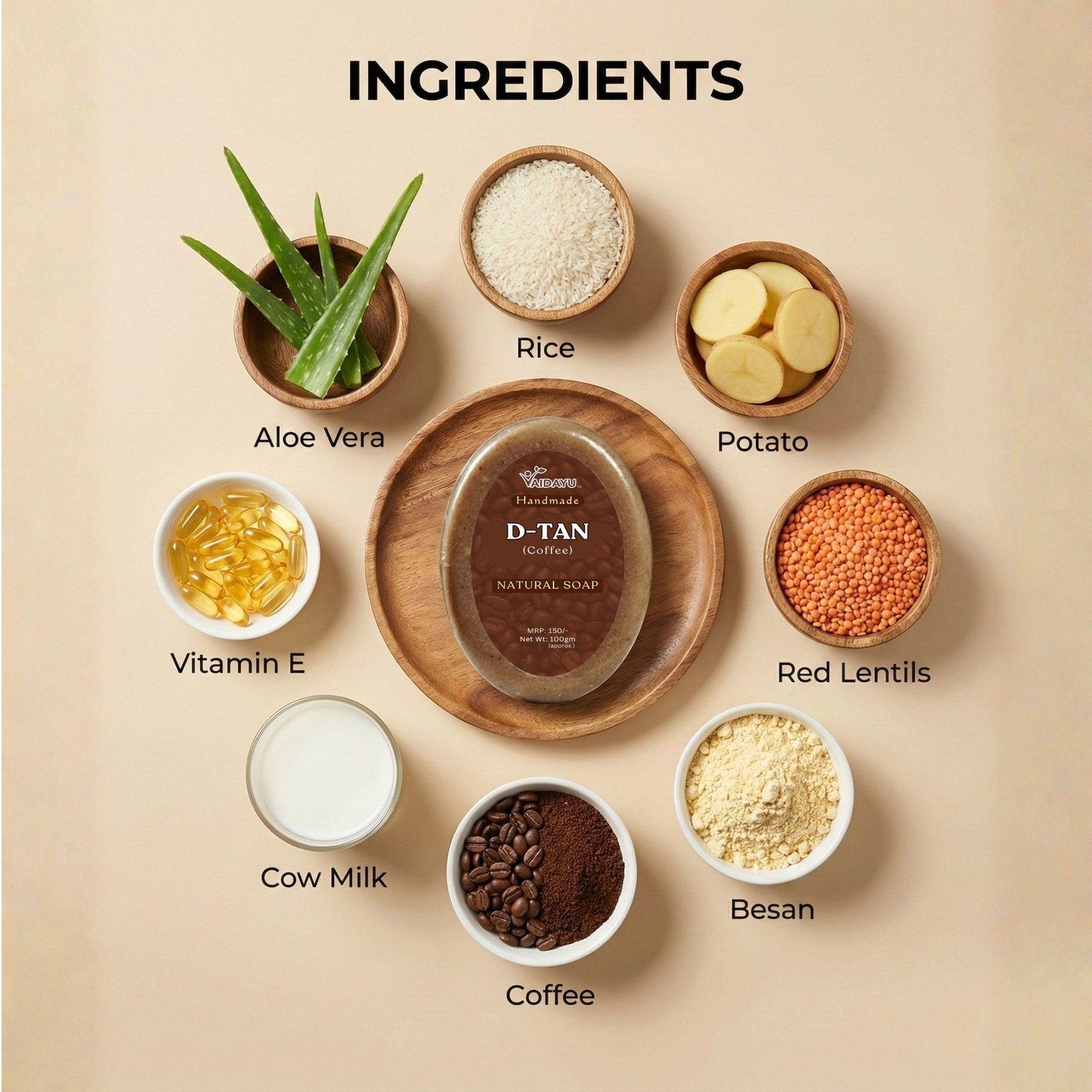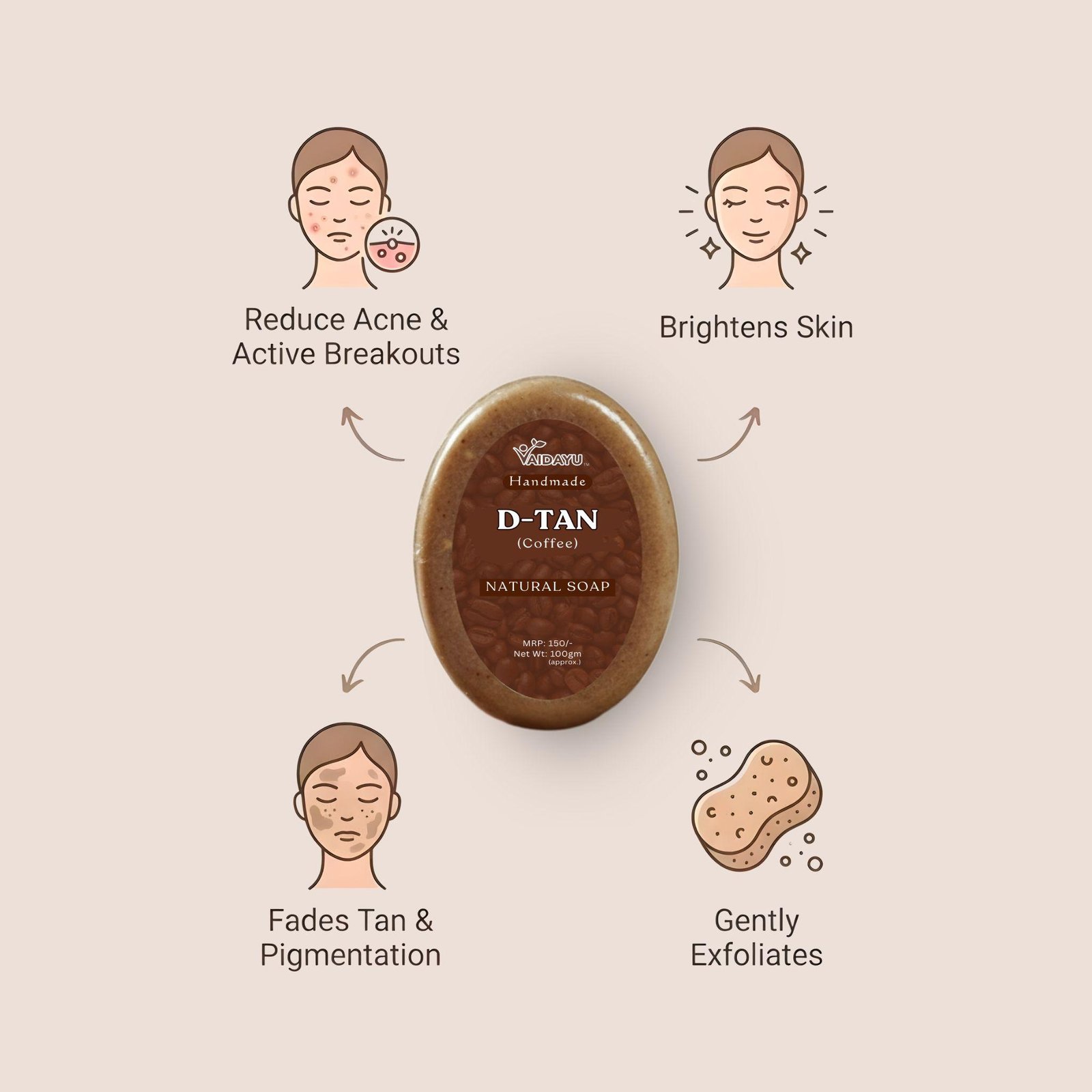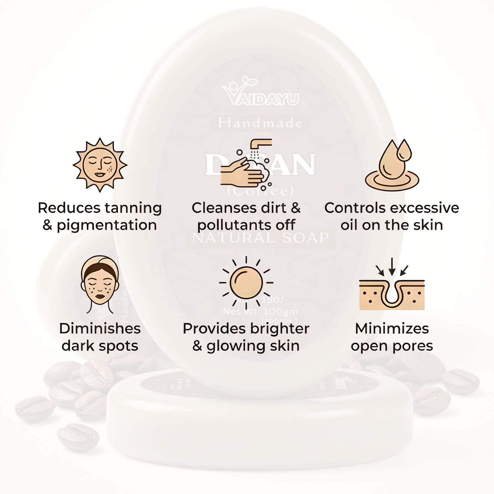 Vaidayu D-Tan Handmade Soap – Coffee & Milk for Tan Removal & Exfoliation (100g)
