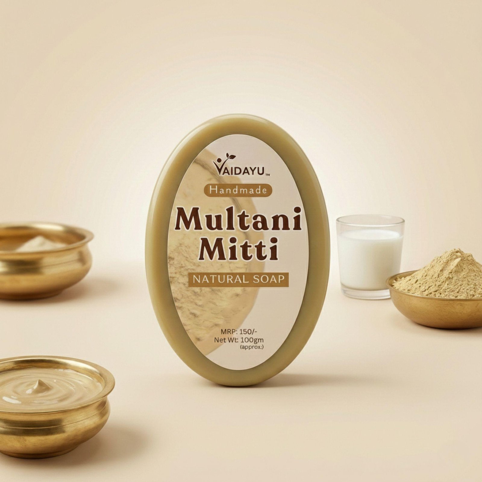 Vaidayu Multani Mitti Handmade Soap – For Acne Control, Oil Balance & Glowing Skin (100g)