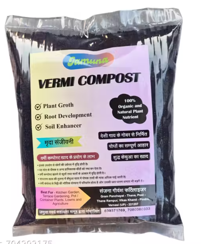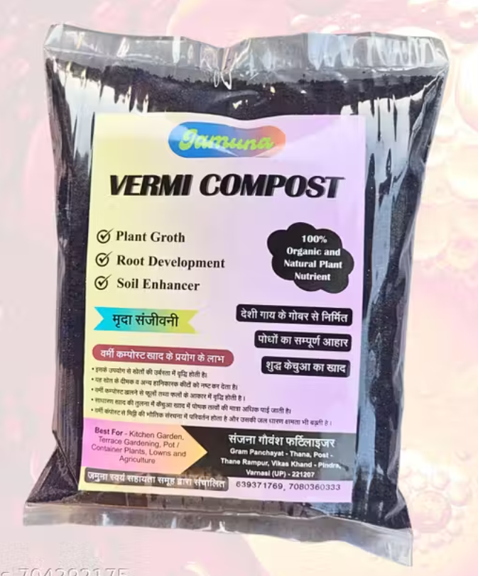 Vermi Compost (1Kg) – 100% Pure Natural Vermi Compost for All Plants | Organic Manure & Fertilizer (Khad)