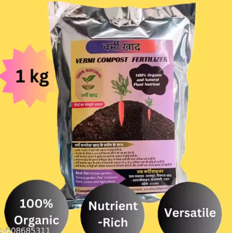 Vermi Compost (1Kg) 100% Pure natural VERMICOMPOST for All Plants Manure, Fertilizer (khad)