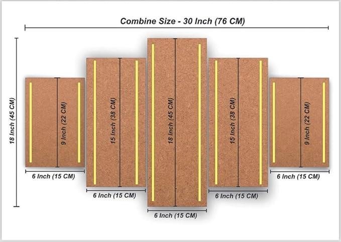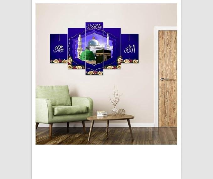 Vibhsa Islamic Muslim Photo Frame Painting Wall Hanging is a stunning and elegant set of 5 frames that is perfect for any Muslim home. Each frame measures 18"x 30" inches and is made of high-quality Mdf material, which is durable and long-lasting.The frames also feature the phrase "MashaAllah," which is an expression of appreciation and gratitude for the blessings of Allah.